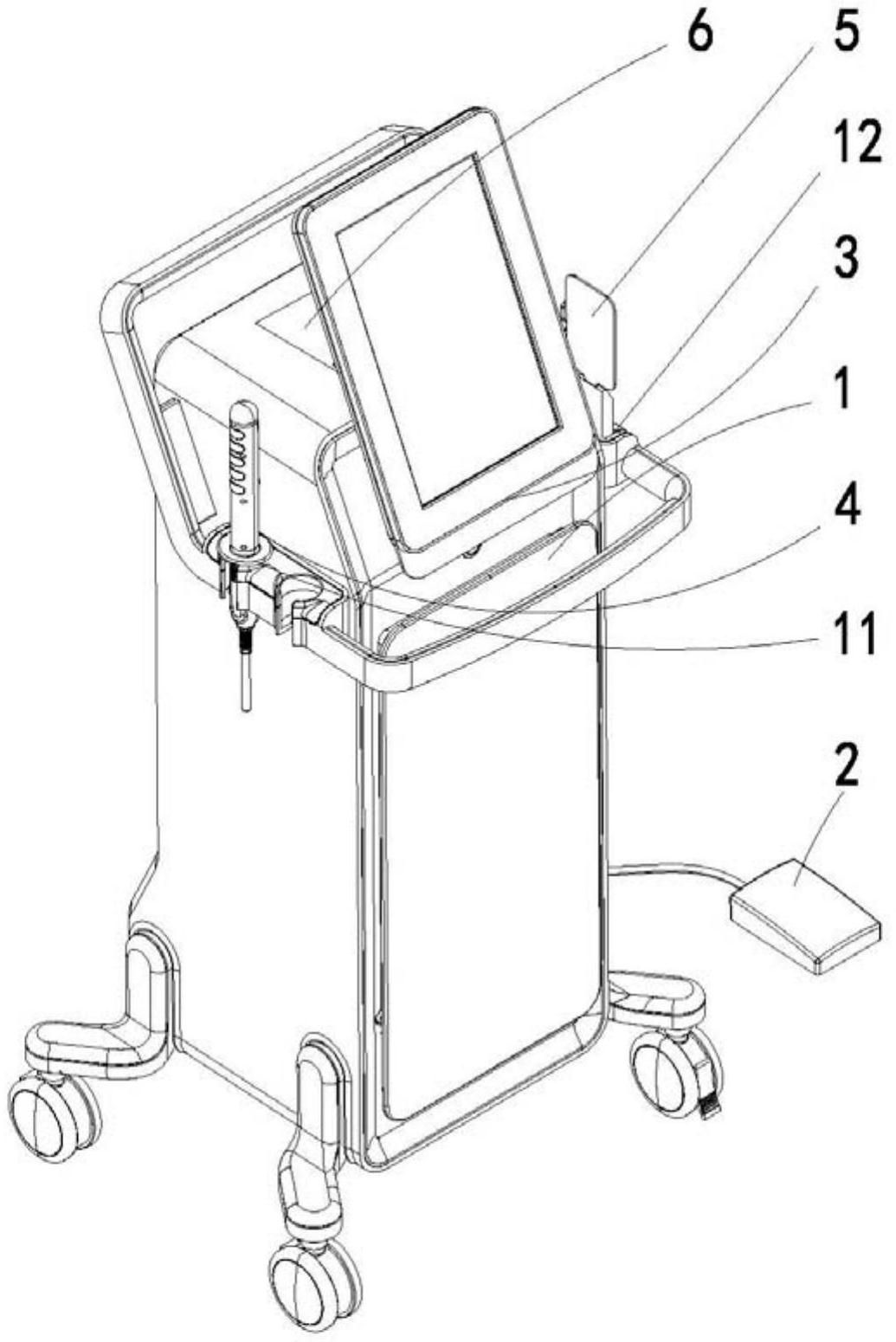 本实用新型提供了一种多极私处射频理疗装置,包括箱体、触发开关、射频信号发生电路、手持单元、吸附单元和识别单元;箱体内部中空,其表面间隔设置有第一卡槽和第二卡槽;射频信号发生电路设置于箱体内部,手持单元设置在箱体外侧,手持单元可拆卸的设置在第一卡槽内,手持单元远离箱体的一端可拆卸的设置有一多理疗部,多电极理疗部上固定设置有电子标签;吸附单元设置在箱体外,吸附单元可拆卸的设置在第二卡槽内;识别单元,嵌设在箱体表面并与射频信号发生电路电性连接,识别单元读取多电极理疗部的电子标签;触发开关设置在箱体外,且手持单元、触发开关和吸附单元靠近箱体的一端伸入箱体内并与射频信号发生电路电性连接。