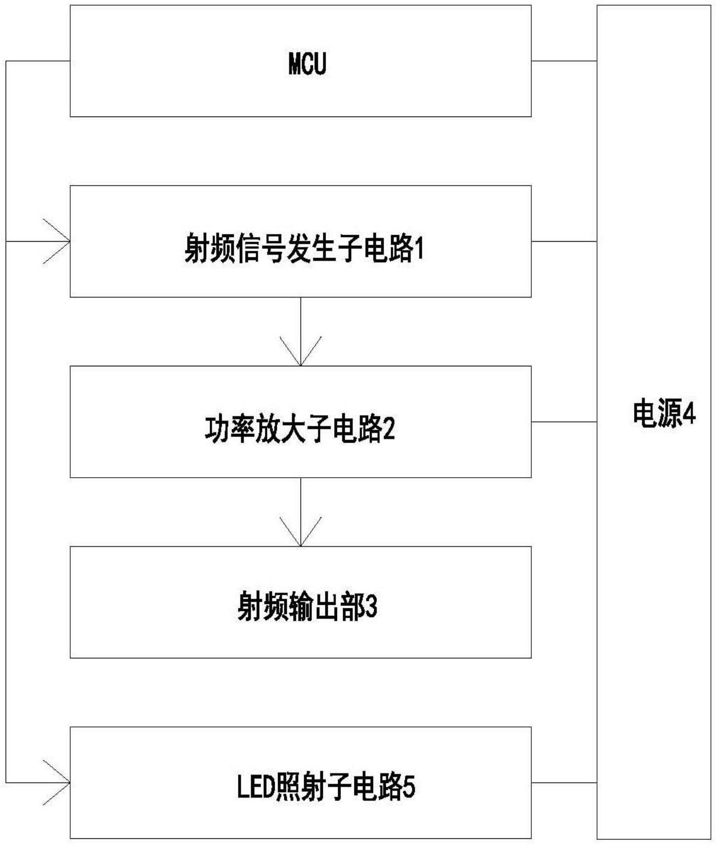 本实用新型提供了一种护肤导入电路,包括MCU、射频信号发生子电路、功率放大子电路、射频输出部和电源;MCU的输出端与射频信号发生子电路的输入端电性连接,射频信号发生子电路的输出端与功率放大子电路的输入端电性连接,功率放大子电路的输出端与射频输出部电性连接;MCU、射频信号发生子电路和功率放大子电路分别与电源电性连接;其中,射频信号发生子电路生成射频信号,功率放大子电路放大该射频信号并输出到射频输出部;射频输出部对预先涂有护肤品的面部皮肤进行刺激,缩短护肤品导入皮肤的时间。