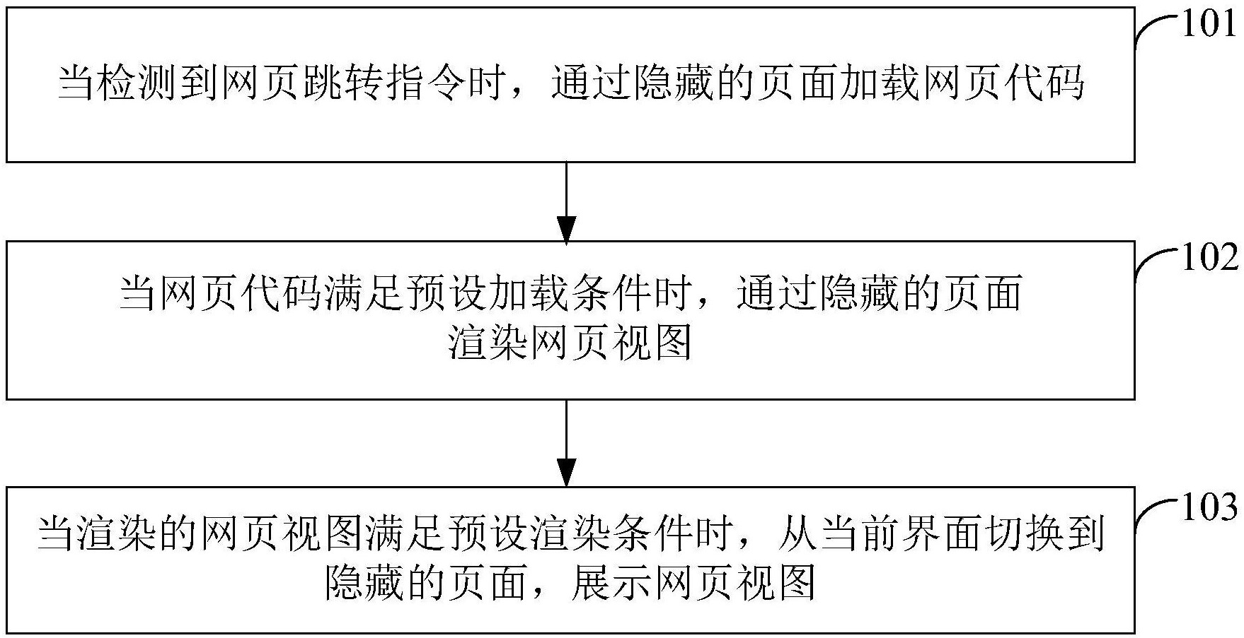 本发明提供了一种网页视图展示方法、装置、计算设备及存储介质,其中,该方法包括:当检测到网页跳转指令时,通过隐藏的页面加载网页代码;当网页代码满足预设加载条件时,通过隐藏的页面渲染网页视图;当渲染的网页视图满足预设渲染条件时,从当前界面切换到隐藏的页面,展示网页视图。本发明在用户触发网页跳转指令时,仍停留在当前界面,同时通过隐藏的页面加载网页代码并渲染,当渲染达到预设渲染条件时,才从当前界面切换到隐藏的页面进行网页视图的展示,对网页视图展示时机进行了很好地控制,避免了页面跳转过程中出现白屏,提升了用户体验。