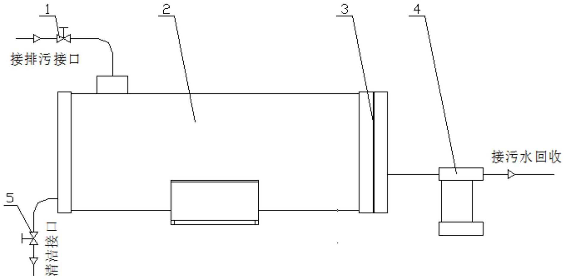 本发明涉及一种储气罐除水用过滤网式排污集成桶,包括卧式的桶体,桶体前侧上部设有污水进口,污水进口与储气罐排污口连通;桶体后侧内部设有内置式过滤器,内置式过滤器通过污水回收管路自桶体尾端连通至外部,污水回收管路上设有零耗气排水阀;桶体内部设有迷宫式导向结构;桶体内的前下部位设有废渣收集腔,废渣收集腔的底部设有清洁开口,该清洁开口与迷宫式导向结构所导向的水压方向相适应;废渣收集腔对外的清洁口与清污管路连接;零耗气排水阀仅把液态水排放,水排完后,自动关闭。本发明实现零耗气排放污水,且对压缩空气的压力没有损失;可实现压缩气体无压差的输送;减轻人工劳动强度。