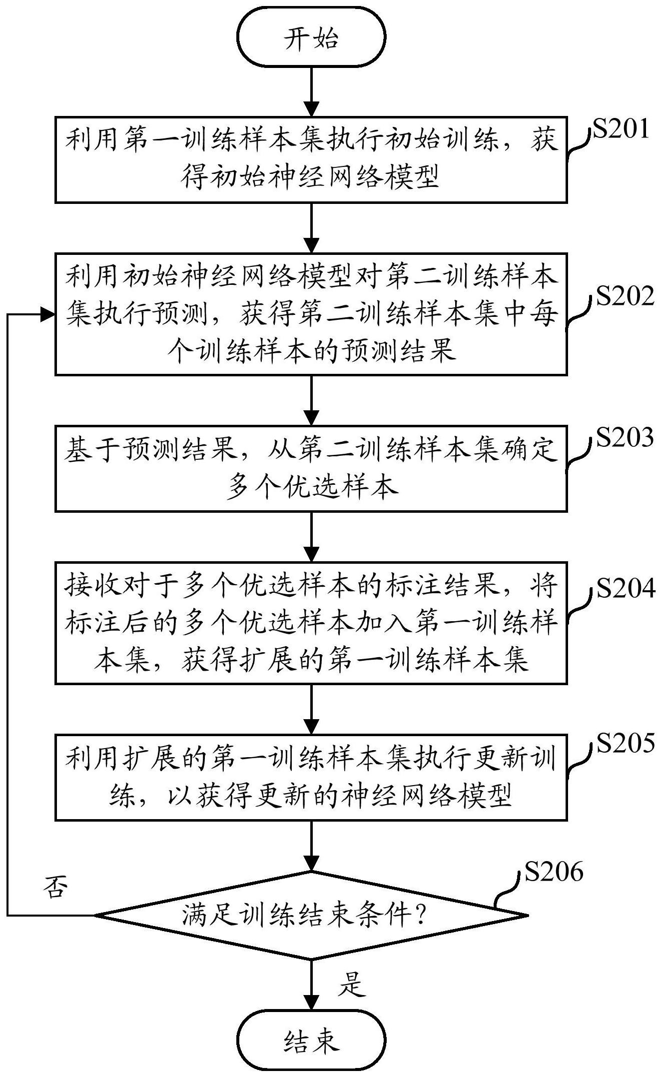 本公开涉及人工智能领域中基于神经网络的计算机视觉技术。具体地,提供了一种神经网络模型的训练方法、装置和医学图像处理系统。训练方法包括:利用第一训练样本集执行初始训练,获得初始神经网络模型;利用初始神经网络模型对第二训练样本集执行预测,获得第二训练样本集中每个的预测结果;基于预测结果,从第二训练样本集确定多个优选样本;接收对于多个优选样本的标注结果,将标注后的多个优选样本加入第一训练样本集,获得扩展的第一训练样本集;利用扩展的第一训练样本集执行更新训练,以获得更新的神经网络模型;在满足训练结束条件时,结束训练;在不满足训练结束条件时,重复预测、优选样本确定、样本扩展以及更新训练步骤。