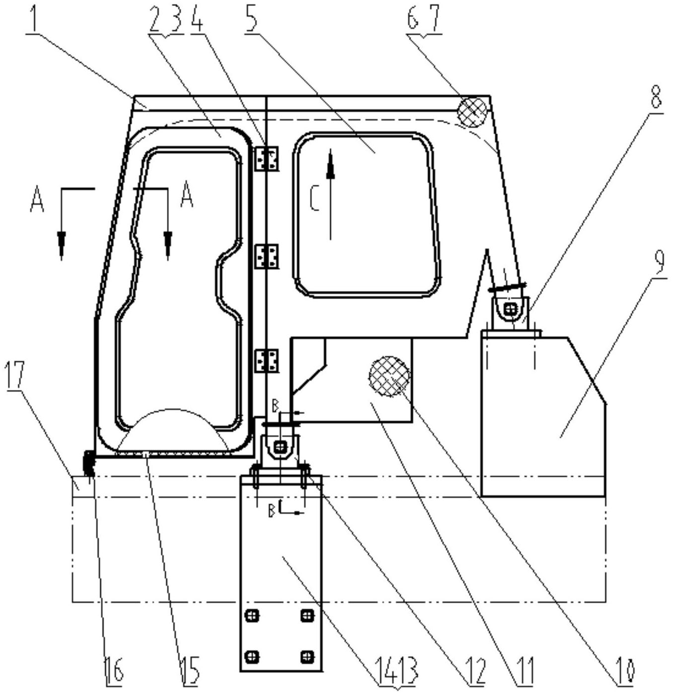 本实用新型提供了一种推土机用全密封型放滚翻驾驶室,包括驾驶室框架,驾驶室框架内设置有减震结构和密封结构;所述减震结构用于在出现翻车及落物事故时保护司机安全;所述密封结构用于提高驾驶室的密封性能,减少驾驶室内灰尘。本实用新型有益效果:一种推土机用全密封型放滚翻驾驶室,极大的降低了推土机驾驶室内的噪音,并极大程度提高了驾驶室的密封性能,减少驾驶室内灰尘,并带有防滚翻及防落物功能,最大程度保护司机的生命安全。