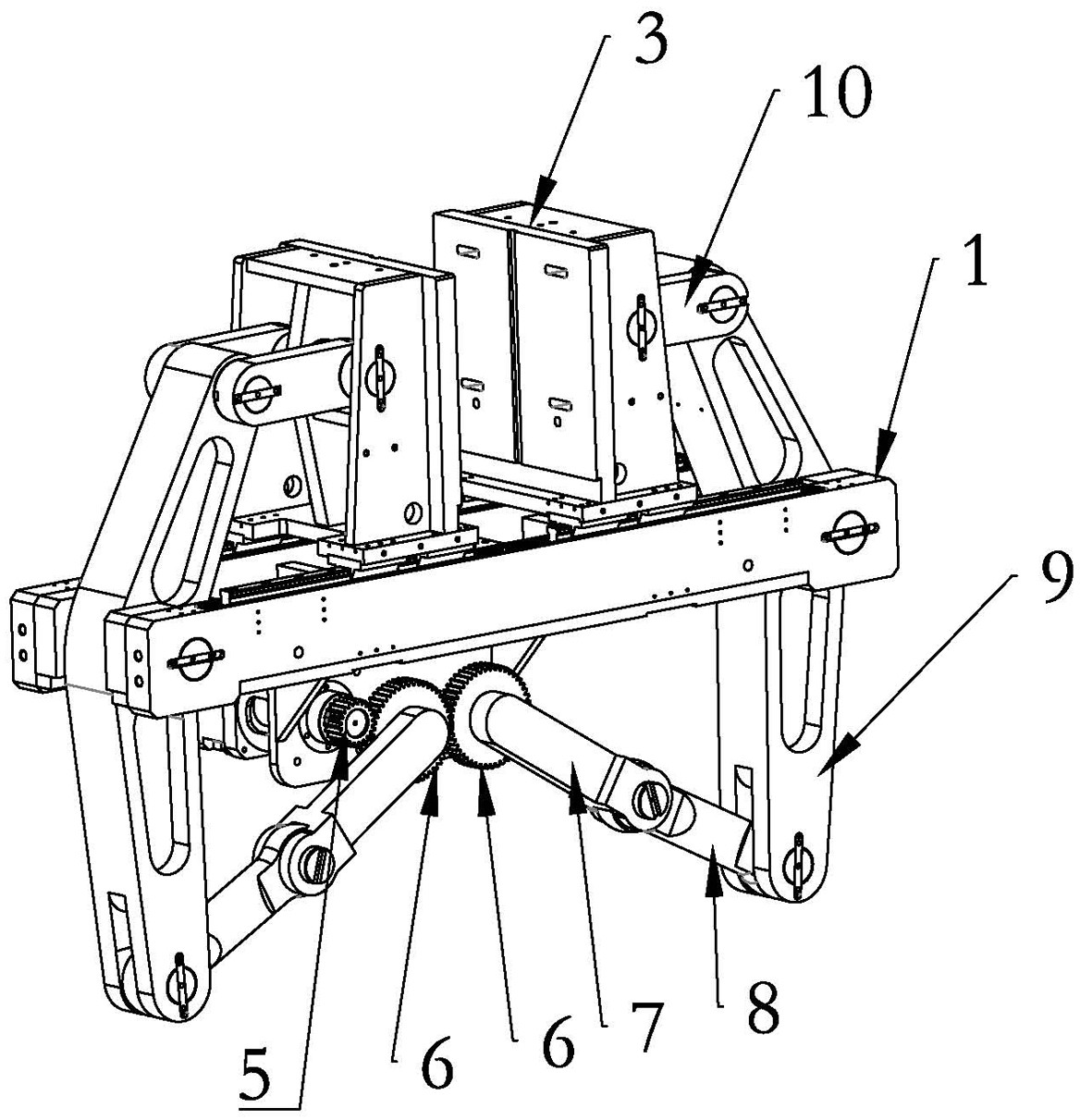 本实用新型涉及吹塑设备开启、闭合或夹紧装置领域,具体涉及一种新型两板式电动合模装置。包括上端设有滑轨的模架和一对模板,模板以滑动结构方式连接在滑轨上,其特征在于,模架的下端设有支座,支座上设有齿轮传动机构,所述齿轮传动机构包括主动齿轮和两个相互啮合的从动齿轮,主动齿轮与其中一个从动齿轮相啮合,主动齿轮连接有电机;位于同侧的从动齿轮和模板之间通过连杆机构相连接。本实用新型是针对现有技术的吹塑机合模装置结构复杂、不易维护的不足,提供一种新型两板式电动合模装置。
