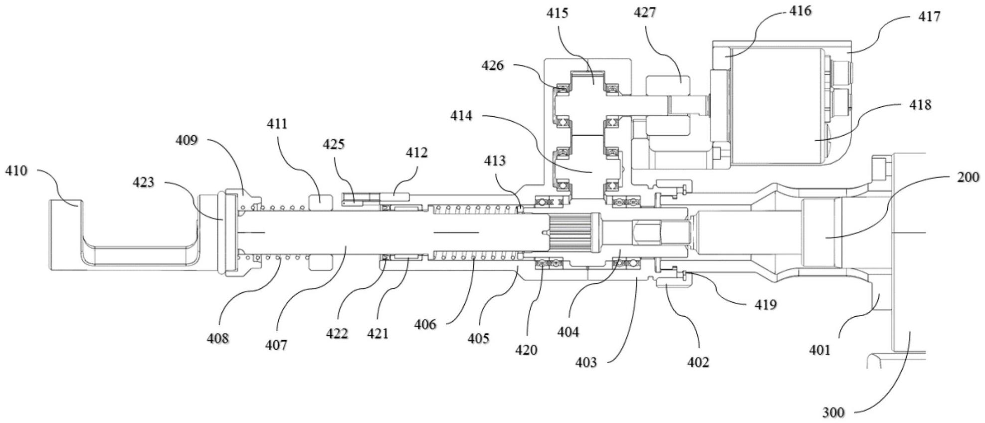 本实用新型涉及一种高压油管拧紧装置,属于汽车发动机自动化装配技术领域。包括拧紧传动组件、电动拧紧工具、直线模组、绝对式编码器、控制系统和基座;直线模组上设有基座,基座的两侧设有相互连接的电动拧紧工具和拧紧传动组件;拧紧传动组件包括依次连接的传动轴I、转动轴II和特殊开口扳手;传动轴I与电动拧紧工具连接;传动轴I还通过齿轮组与绝对式编码器连接;绝对式编码器、直线模组和电动拧紧工具分别与控制系统连接。通过本实用新型提供了一种高压油管拧紧装置外置绝对式编码器系统,并借助于PLC控制器系统与标准电动拧紧工具实现高压油管螺母的快速自动拧紧与质量监控,结构简单紧凑,使用稳定可靠,可提高发动机的生产效率。