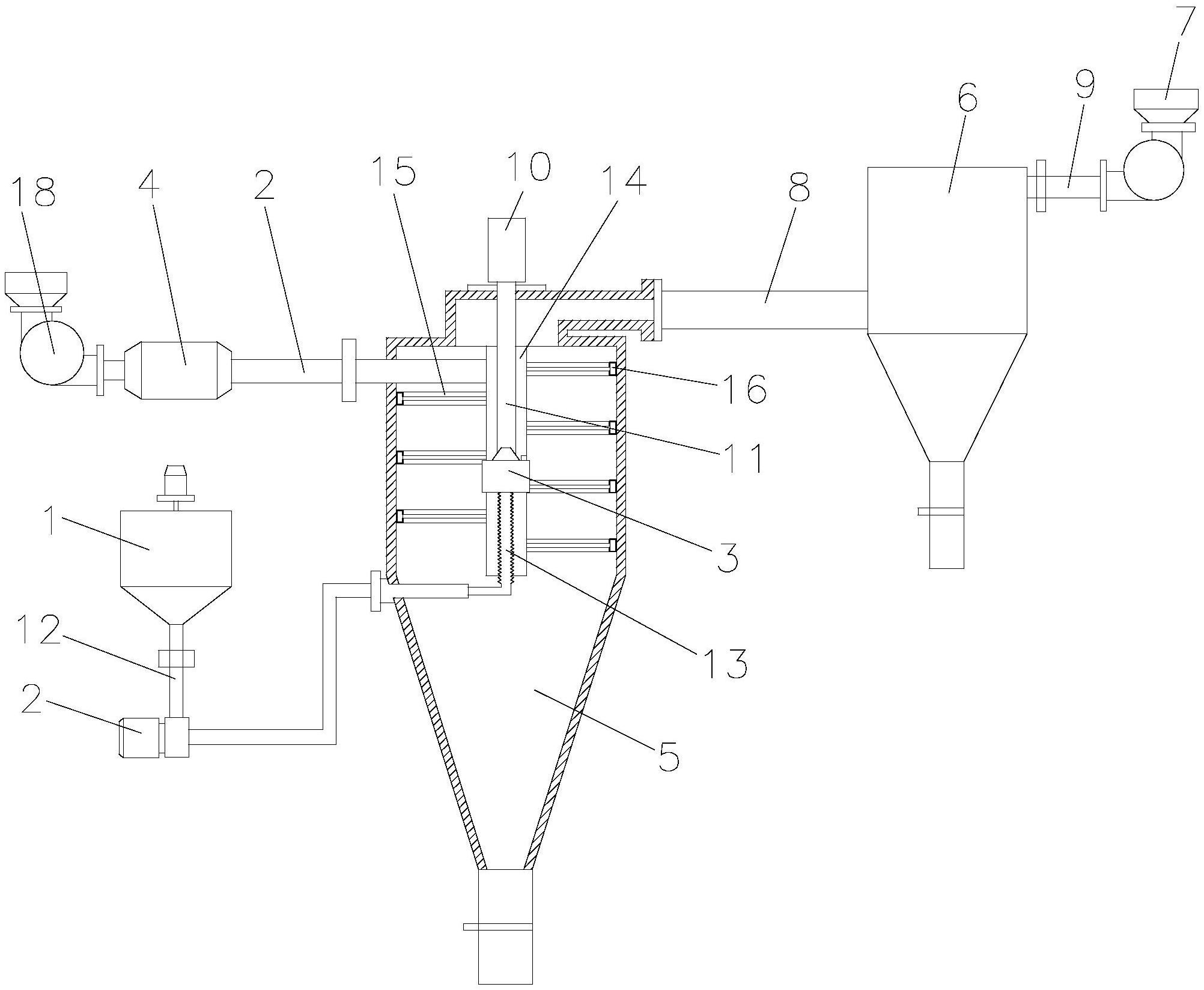 本实用新型涉及一种冷却喷雾造粒干燥机,主风管的两侧分别固定安装有第一副风管和第二副风管,第一副风管和第二副风管均与主风管连通,若干第一副风管沿主风管的高度方向平行且等间隔设置,若干第二副风管沿主风管的高度方向平行且等间隔设置,第一副风管和第二副风管上均开设有出风口,第一副风管和第二副风管将热风均匀的分散在干燥塔内,雾状液滴向上喷洒,升降气缸工作,推动杆带动雾化器沿干燥的高度方向做直线往复运动,雾化器喷出的雾状液滴可均匀的喷射在干燥塔内,喷出的雾状液滴可及时与热风进行充分接触,热风可对颗粒进行充分干燥,颗粒的干燥度较足;雾化器一边移动一边喷射,热风从侧面吹向雾化器,热风不会影响雾化器的喷射。
