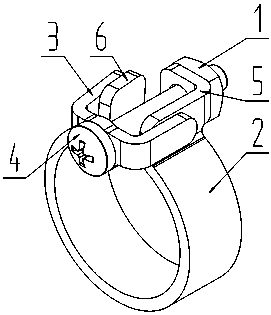 本实用新型公开了一种新型消声器排气口卡箍结构,属于汽油机配件领域,用于消声器排气口的箍紧,其包括卡箍和螺钉,所述卡箍的两个自由端分别安装有左弯折部和右弯折部;其中所述的右弯折部为L型结构,其上开有通孔;所述的左弯折部和右弯折部的外表面均与U型压板的内表面接触,所述螺钉依次穿过U型压板和右弯折部上的通孔并在尾端通过螺母将左弯折部、右弯折部、U型压板固定。鉴于上述技术方案,本申请能够实现工具与卡箍中心线平行方向(轴向)操作,实现箍紧卡箍的效果。