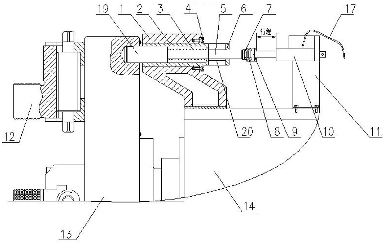 本实用新型公开了一种定位销式分度定位装置,属于机械加工技术领域,以解决手动定位销式分度定位装置用于机床或其它较大设备上时手工操作繁琐安全性低的问题。包括设在主轴箱体上的卡盘和分度定位轴,卡盘在主传动系统的驱动下随从主轴可旋转;卡盘上设有至少两个分度定位孔,分度定位轴一端活动设在任一分度定位孔中;分度定位轴另一端连接有电动推杆。本实用新型结构简单,操作方便,应用可靠,改造加工成本低。除了可应用到机床行业,也可应用于其他行业中,来实现简易分度定位或锁紧。
