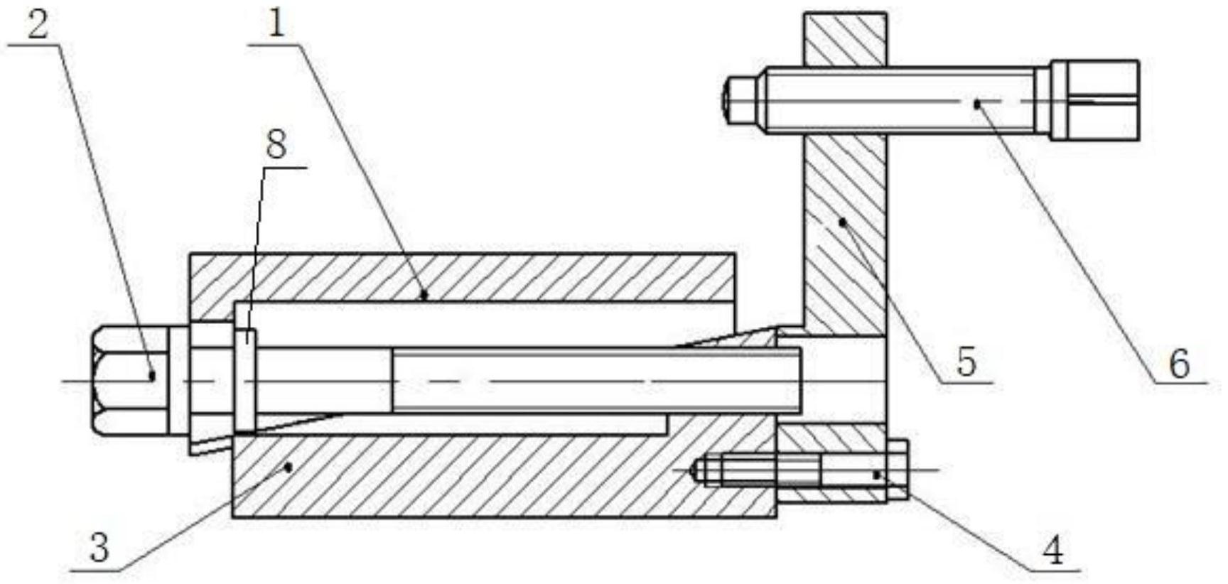 本实用新型公开了一种用于齿盘加工的工装夹具,包括上滑块、下滑块、调节螺杆、侧顶板和紧定螺钉,所述上滑块通过调节螺杆连接在下滑块上,上滑块的底面与上滑块的顶面为反向的斜面,调节螺杆可转动的穿过上滑块一侧后,与下滑块的另一侧螺接,上滑块与调节螺杆连接的孔为U型孔,侧顶板安装在下滑块外侧处,并且侧顶板上设有用于调节螺杆运动的通孔,所述紧定螺钉穿过侧顶板,并与之螺纹连接。结构简单,装夹方便、适用在高精度复合磨床加工齿盘,加工出的齿盘精度高,加工效率高。
