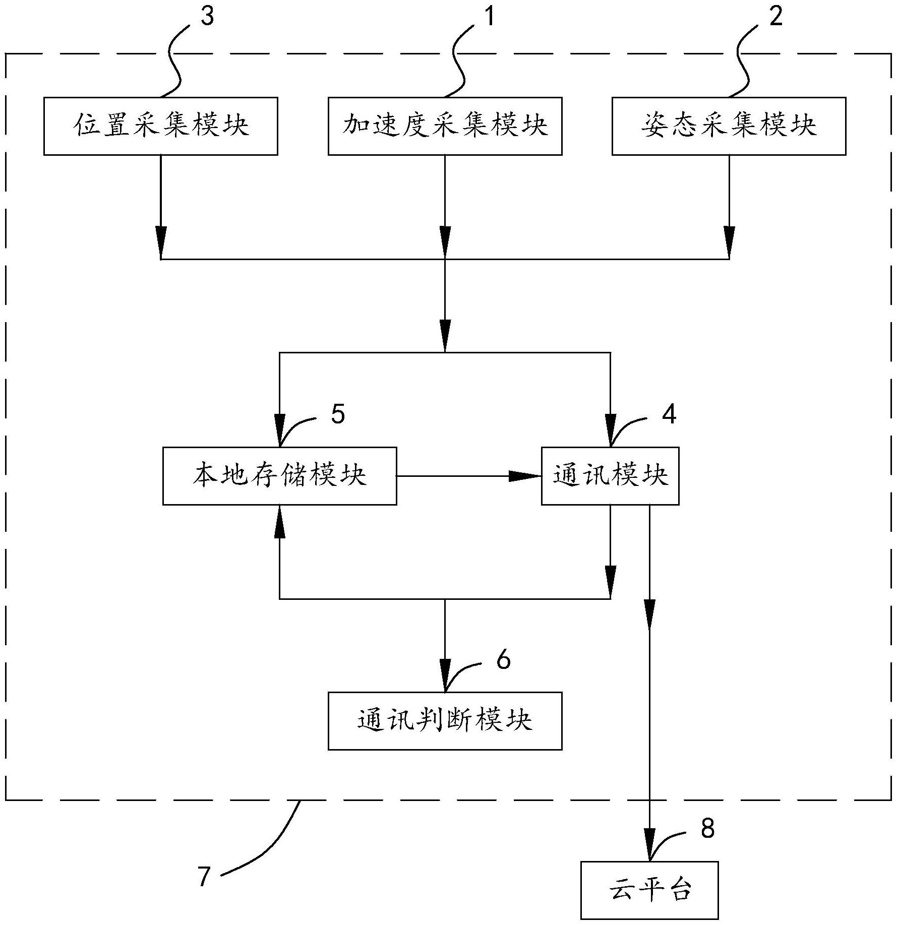 本申请涉及一种无人机通讯系统,其属于无人机通讯领域,包括加速度采集模块,用于采集无人机的加速度,并输出加速度采集信号;姿态采集模块,用于实时采集无人机的姿态,并输出姿态采集信号;位置采集模块,用于采集无人机的位置,并输出位置采集信号;通讯模块,分别连接加速度采集模块、姿态采集模块和位置采集模块,接收加速度采集信号、姿态采集信号和位置采集信号,并将加速度采集信号、姿态采集信号和位置采集信号发送至云平台;本地存储模块,分别连接加速度采集模块、姿态采集模块和位置采集模块,用于接收并存储加速度采集信号、姿态采集信号和位置采集信号。本申请具有实现了对无人机飞行数据采集和保存的效果。