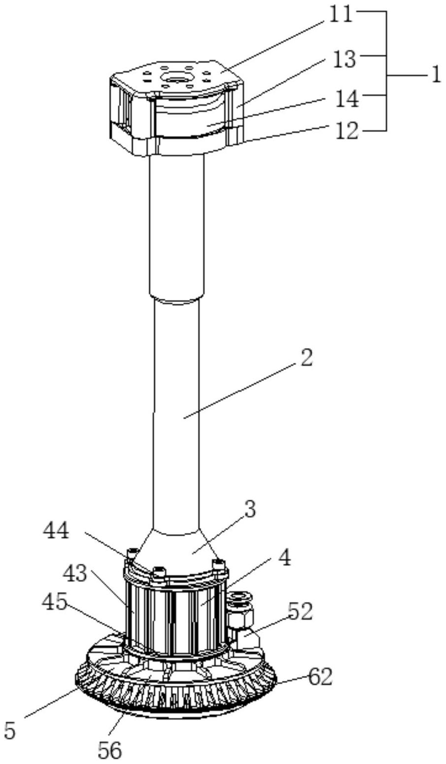 本实用新型公开了一种无人机弥雾装置,包括第一安装座、竖直连接杆、第二安装座、电机安装座、盖盘和双层转动盘,所述转动电机的电机轴与双层转动盘连接,所述盖盘覆盖在双层转动盘的正上方,所述盖盘内设置有供水通道,所述供水通道具有进水口和出水口,所述进水口设置在盖盘的顶部,所述出水口朝向双层转动盘设置,所述双层转动盘和盖盘之间形成产生水雾的发生腔和供水雾向外流动的流动间隙。药液从进水口进入内盘的第一容纳槽中,转动电机同时驱动外盘和内盘转动,进入第一容纳槽内的药液在离心力的作用下从第一挡板之间甩出,进而将药液进行第一次均匀分散,然后药液经过第二挡板和抵接柱,实现第二次均匀分散,提高弥雾效果。