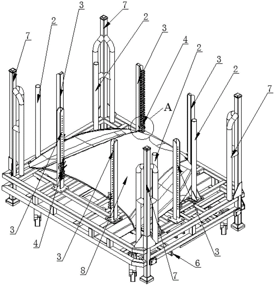 本实用新型涉及一种薄板型零件自动牵引高精度料框,包括底框、导向限位机构、自动牵引机构及行走机构,导向限位机构包括多个按待装零件外部结构形状垂直设于所述底框上的导向杆、限位杆,以及多个沿竖直方向且间隔预定距离设于所述限位杆上的活动限位块;活动限位块中部与限位杆铰接,前端朝向待装零件并设有定位面,末端设有可抵靠于限位杆上的限位挡柱;自动牵引机构包括设于所述底框下的定位部及设于所述定位部两侧的导向块,本实用新型结构简单,精度高,容量大,占地面积小,可配合辅助视觉机械手及AGV自动牵引机构,实现自动装、取件,及自动出、入库。