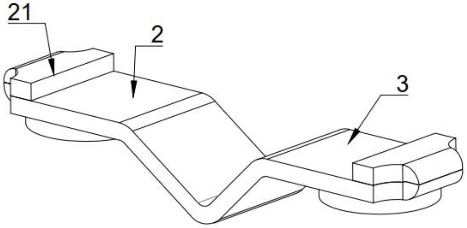 本实用新型提供一种适用于交流接触器内的接触桥,包括连接本体以及设置于连接本体两侧的第一连接部和第二连接部,所述第一连接部、第二连接部以及连接本体三者一体成型,所述第一连接部上设置有第一弯折部,所述第一弯折部能够向上弯折至第一连接部的上方使得第一弯折部的下端面与第一连接部的上端面相抵触,所述第二连接部上设置有第二弯折部,所述第二弯折部能够向上弯折至第二连接部的上方使得第二弯折部的下端面与第二连接部的上端面相抵触,所述第一弯折部与第一连接部一体成型,所述第二弯折部与第二连接部一体成型,该接触桥能够克服现有技术中的连接本体与两个弧角容易造成虚焊易从而导致两个弧角脱落缺陷。