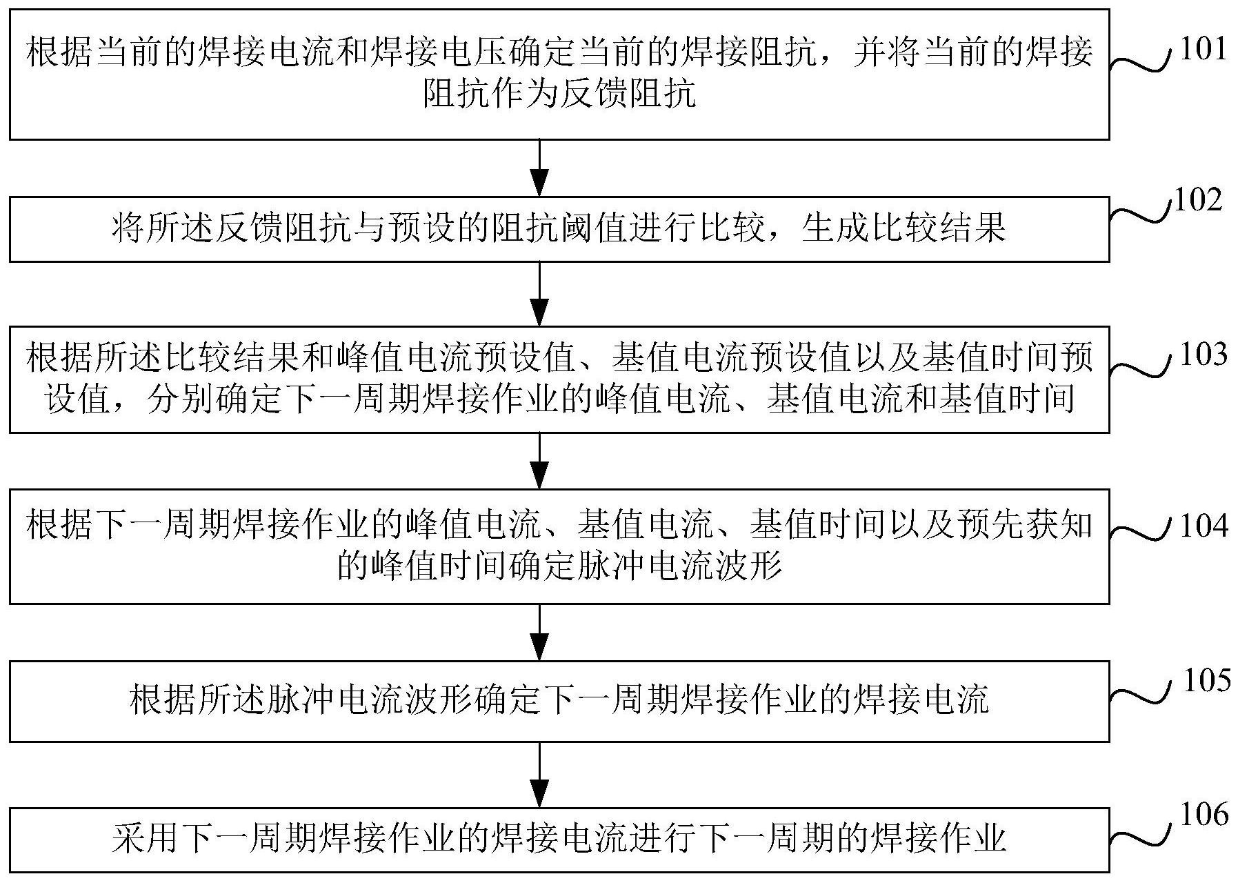 本发明提供了一种焊接作业的控制方法及装置,涉及脉冲焊接技术领域。方法包括:根据当前的焊接电流和焊接电压确定当前的焊接阻抗,作为反馈阻抗;将反馈阻抗与预设的阻抗阈值进行比较,生成比较结果;根据比较结果和峰值电流预设值、基值电流预设值以及基值时间预设值,分别确定下一周期焊接作业的峰值电流、基值电流和基值时间,结合预先获知的峰值时间确定脉冲电流波形;根据脉冲电流波形确定下一周期焊接作业的焊接电流,从而进行下一周期的焊接作业。本发明通过以焊接阻抗作为反馈量来进行焊接控制,从而完成对焊丝的熔化控制,进而对焊接电弧长度进行控制,可以保证在焊接过程中电弧弧长稳定。
