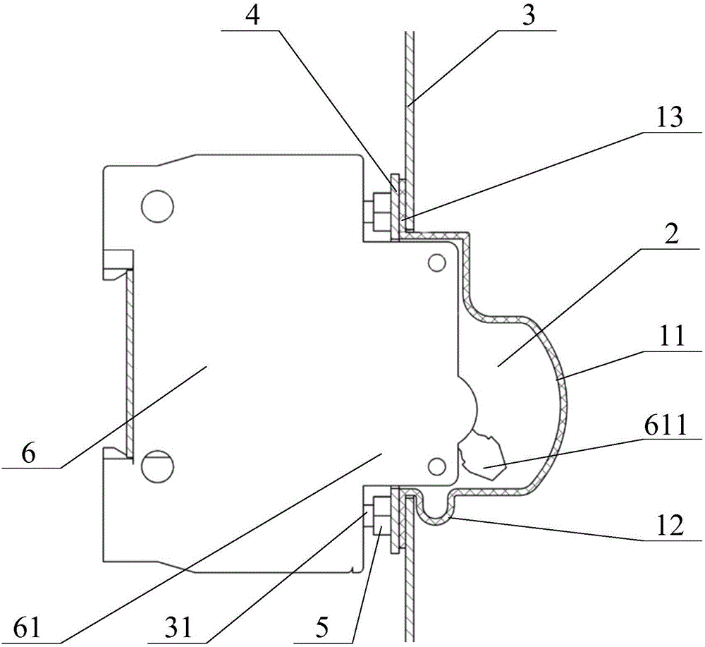 本实用新型提供了一种焊机用断路器防水护套,罩设于焊机的断路器的操作手柄面板外部,焊机用断路器防水护套至少包括一侧开放的弹性防水护套本体,弹性防水护套本体包括能间隔的罩设在操作手柄面板的操作手柄外部的容置部,以及与容置部相接为一体且呈凸出状的弹性伸缩部,伸缩部能随容置部伸缩变形。本实用新型提供的焊机用断路器防水护套,能够增加弹性防水护套本体在拉伸时的行程,有效减少拉力对弹性防水护套本体的破坏,从而提高使用寿命,且该焊机用断路器防水护套对断路器防护可达IP23防水等级要求,满足潮湿、雨雪等室外恶劣环境工作。
