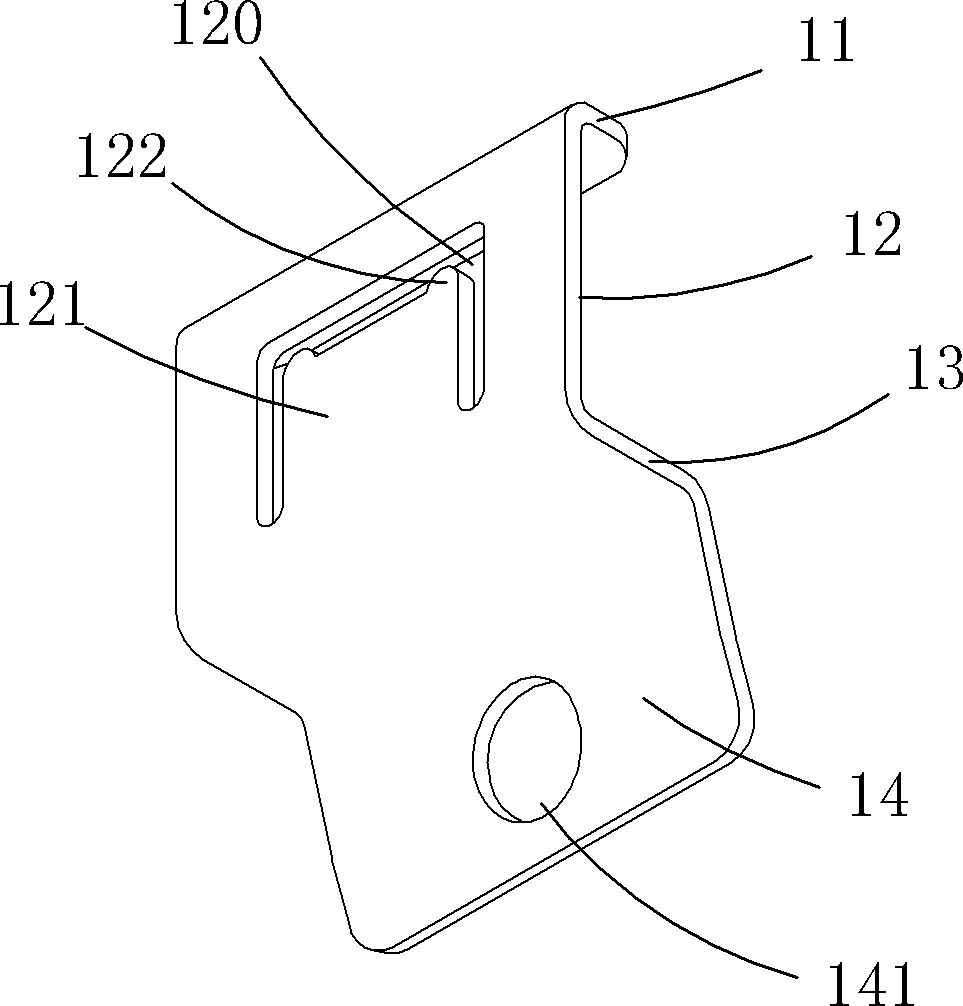一种柱形温度检测装置固定片,所述固定片是由一弹性钢片形成的三级弹簧固定结构,所述弹性钢片弯折形成有一横截面呈凹状的压接本体及一固定部,其中:所述压接本体与该柱形温度检测装置的外形相配,该压接本体包括依次连接的第一侧接部、相对侧的第二侧接部及连接二者的平接部,构成第一级弹簧;该固定部是沿该压接本体的第二侧接部弯折而向外侧延伸的片体,构成第二级弹簧,且所述固定部设有供螺钉穿设的固定孔;所述平接部上切开形成的片状抵接舌,该抵接舌的自由端朝向所述第一侧接部,其根部靠近该第二侧接部设置,该抵接舌与所述第二侧接部组合构成第三级弹簧。本发明安装简单、固定可靠,能保证继电器与散热器接触良好,而且成本低,安装占用空间小。