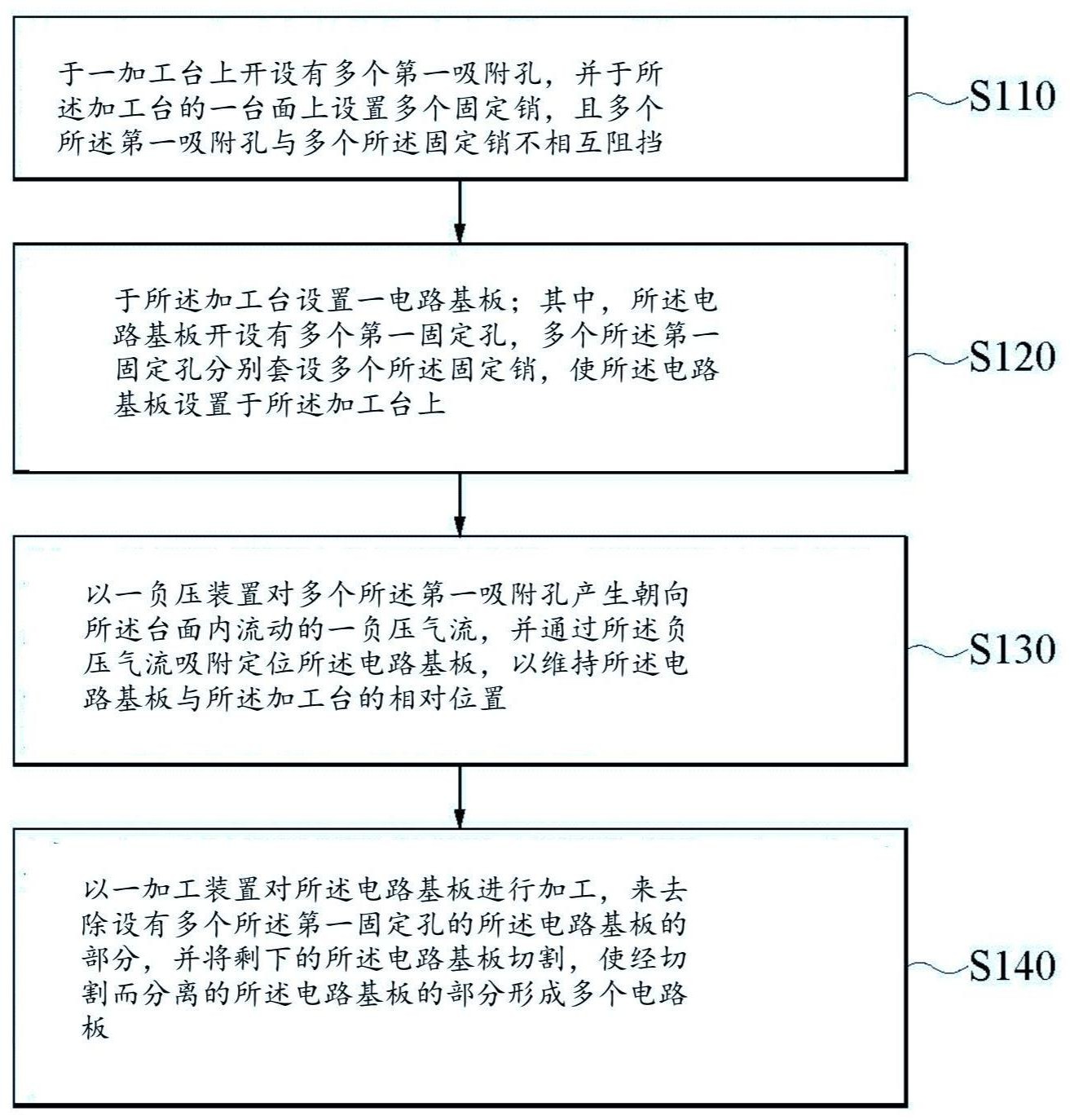 本发明公开一种电路板的制作方法及其所制成的电路板结构。电路板的制作方法包括有一前置步骤、一放置步骤、一吸附步骤及一加工步骤。所述前置步骤:在一加工台上开设多个吸附孔,在所述加工台设置多个固定销;所述放置步骤:准备一电路基板,在所述电路基板开设有多个固定孔,多个所述固定孔分别套设多个所述固定销,使所述电路基板设置于所述加工台上;所述吸附步骤:以一负压装置通过多个所述吸附孔对所述电路基板产生一负压气流;所述加工步骤:以一加工装置去除设有多个所述固定孔的所述电路基板的部分,并将剩下的所述电路基板切割以形成多个电路板。