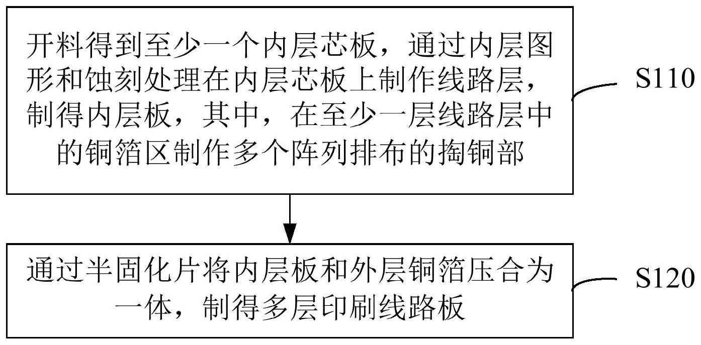 本申请适用于印刷线路板技术领域,提出一种多层印刷线路板,包括至少两层线路层,所述至少两层线路层包括铜箔区,且至少一层所述线路层的铜箔区设有多个阵列排布的掏铜部,所述掏铜部以移除部分铜箔的方式形成。本申请同时提出一种多层印刷线路板的制作方法。上述多层印刷线路板及其制作方法能够调节线路层的残铜率,消除板内的局部应力,进而解决了板翘曲的问题。