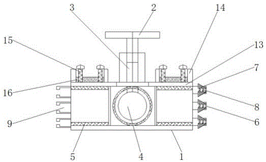 本实用新型公开了一种防腐蚀型球阀,包括道、凸块和滑槽,所述管道的内部设置有球阀,且球阀的上方设置有转轴,所述转轴的上方安装有把手,所述管道的内部设置有防腐层,所述凸块固定于管道的右侧,且凸块的内部设置有弹簧,所述弹簧的上下两端焊接有卡板,所述管道的左侧设置有凹槽,所述管道的内部设置有第二内管,且第二内管的内部安装有滚轮,所述第二内管的内部设置有第一内管。该防腐蚀型球阀设置有防腐层,在管道在进入容易腐蚀塑料的液体时,防腐层有效的对管道进行了保护作用,避免了因为腐蚀带来漏水,导致其需要更换或者维修。
