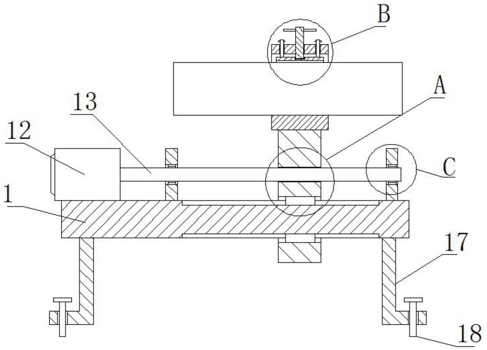 本实用新型涉及行星切割机技术领域,且公开了一种行星切割机的夹紧送料装置,包括横板,所述横板外套设有滑动板,所述滑动板左侧的侧壁开设有滑动孔,所述滑动孔的孔壁对称固定连接有两个滑块,所述横板上下两侧的侧壁均开设有与滑块相匹配的滑槽,所述滑块位于滑槽内,所述滑动板上侧的侧壁固定连接有安装板,所述安装板左侧的侧壁开设有夹料孔,所述安装板上侧的侧壁开设有螺纹孔,所述螺纹孔内螺纹套接有夹紧螺杆,所述夹紧螺杆的两端均伸出螺纹孔,所述夹紧螺杆的下端固定连接有夹板,所述夹板上侧的侧壁开设有安装槽,所述安装槽的槽壁通过轴承与夹紧螺杆转动连接。本实用新型有效的提高了送料的便利性和精确度。