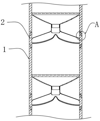 本实用新型公开了一种多功能组合式离子交换树脂柱,涉及离子交换树脂柱领域,包括罐体,所述罐体的顶端连接有罐盖,所述罐盖的顶端设置有罐体上接口,且底端设置有罐盖下接口,罐体的顶端设置有罐盖上接口,且底端设置有罐体下接口,顶板中部的顶端设置有上罐口,罐盖在顶板下方设置有匀流板,罐体底部的中央设置有下罐口,所述顶板内壁在上罐口的下方设置有导向板。本实用新型设置可拼接的罐体,可拼接内含有不同吸附性质的树脂,组合多组罐体可达到对复杂成分原液的吸附目的,设置弧形的顶板,在顶板的四周设置漏口,避免了罐体在连接的时候原液流出产生的浪费,在罐体的顶部设置有利于原液均匀流下的匀流板,保证了原液能够均匀的流经树脂。