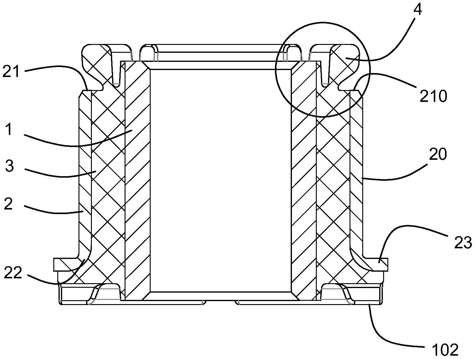 本实用新型揭示了一种衬套及包含该衬套的悬置,所述悬置包括收容所述衬套的支架。所述衬套包括内芯、外壳及设置在所述内芯和所述外壳之间的减振主簧,所述外壳具有外表面且具有相对设置的第一端和第二端,所述衬套在所述第一端设置有用于被按压变形而形成限位部的按压变形部,所述按压变形部在所述衬套的径向方向上未凸伸出所述外表面。如此设置,所述衬套可以从所述按压变形部的一端先组装至所述支架,然后通过按压的方式使得所述按压变形部变形而形成所述限位部,无需设置两个衬套,既简化了生产工艺,又降低了生产成本。