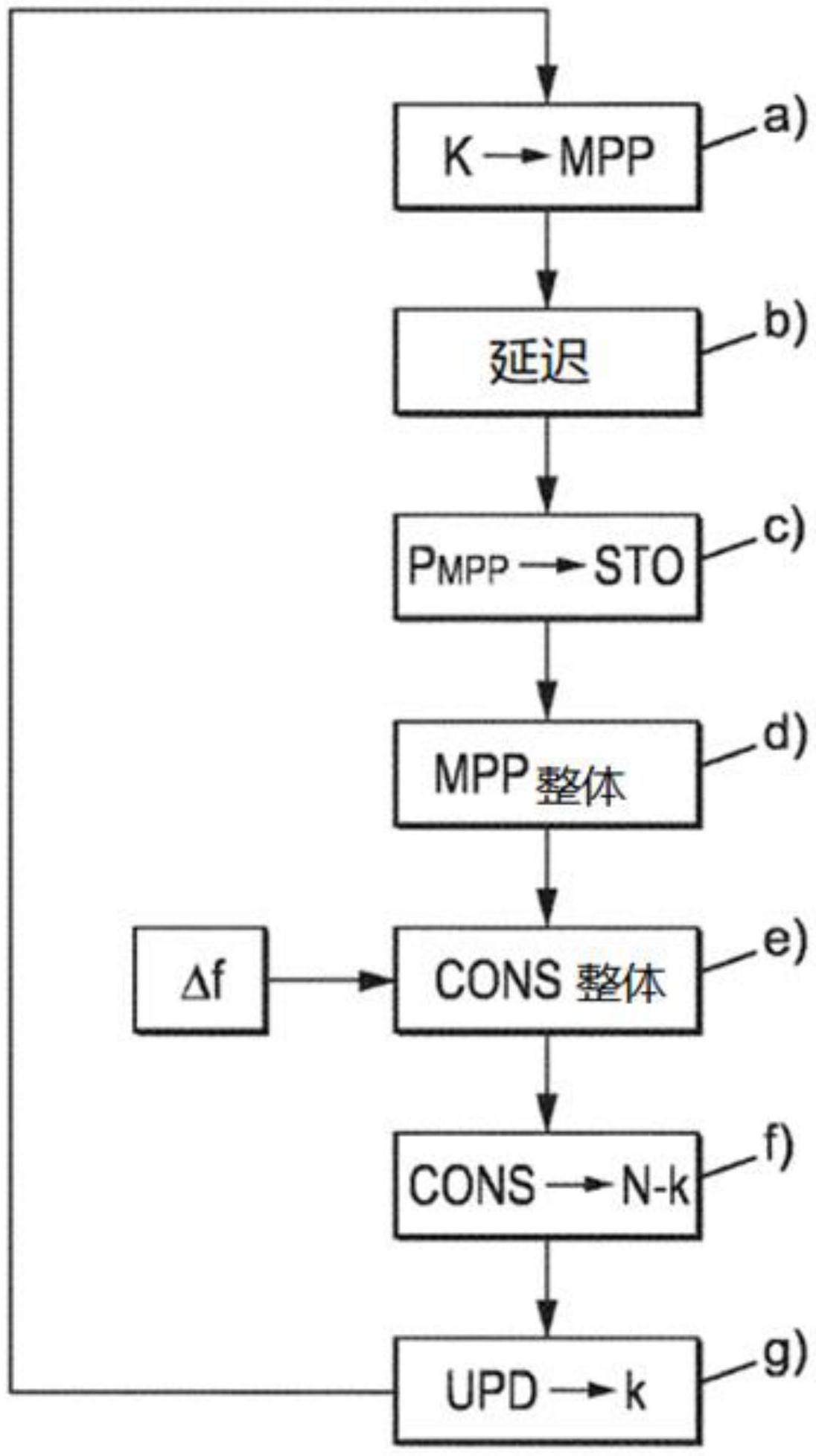本发明涉及控制由光伏板设备所产生的发电量,以建立功率储备以及确定在设备中的N个逆变器的产能管理。该方法以迭代方式实施,包括如下步骤:‑向N个逆变器组中的k个逆变器发出各自的设置点,使得每个逆变器都能产生最大功率(a),其中k
