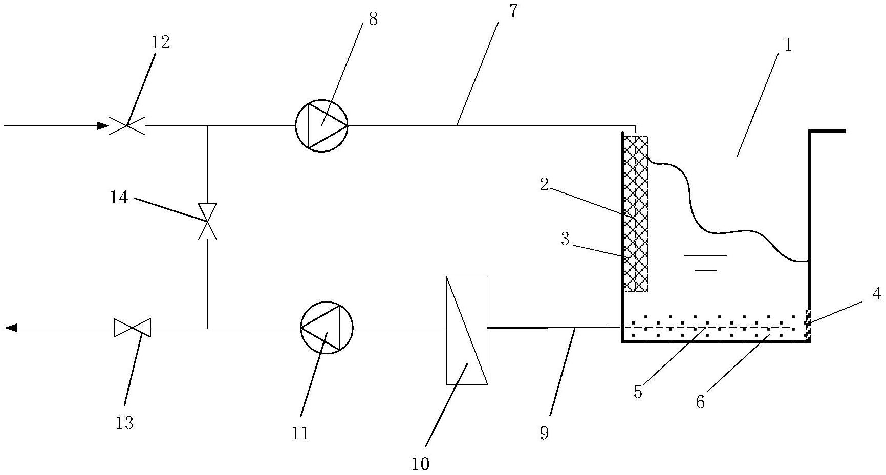 本实用新型公开了一种垃圾储坑的发酵堆体用曝气系统及垃圾储坑,包括:正压鼓风曝气机构、负压抽气曝气机构和连通组件;其中,正压鼓风曝气机构的风机入口管道通过连通组件与负压抽气曝气机构的风机出口管道连通;负压抽气曝气机构包括:透气垫层、负压曝气管组件、负压气体输送管道、气液分离器、抽气风机、风机出口管道和负压曝气排气阀,其中,透气垫层用于铺设在垃圾储坑的底部;负压曝气管组件铺设在透气垫层内,该负压曝气管组件经负压气体输送管道依次与垃圾储坑外部的分离器和抽气风机连接,抽气风机连接的风机出口管道设置负压曝气排气阀。该曝气系统能提升大型垃圾储坑内的发酵堆体的好氧发酵效果。