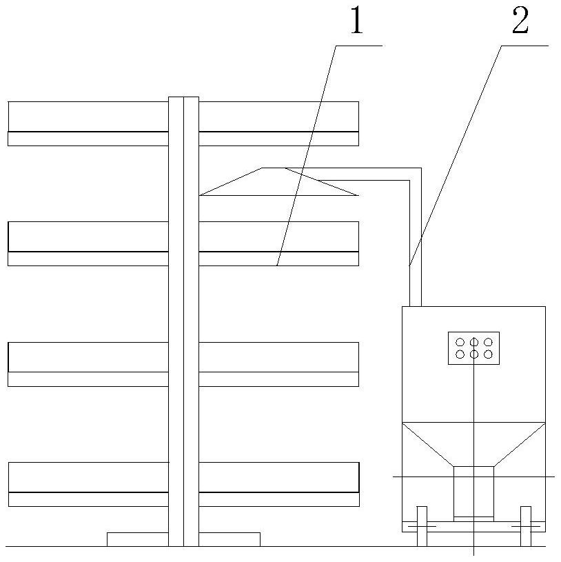 本实用新型公开了一种悬臂式多层黑水虻养殖设备,包括:多层传动带式养殖床固定设置在悬臂支撑机构上;移动式布料小车设置在悬臂支撑机构外侧,处于各传动带式养殖床的上方,能沿悬臂长度方向水平移动;出料刮板悬挂于每层传送带式养殖床上部,能刮出每层传送带式养殖床表面的幼虫;筛分皮带设置在地面上,处于各传动带式养殖床的尾部,垂直于各传动带式养殖床,能接收各传动带式养殖床的刮板出料和传动落料;监测自控装置,能对车间内的工艺条件和生产过程进行监测和控制。该设备加料方式均匀、物料温湿度易控、出料彻底以及进出料结构简单易维护。