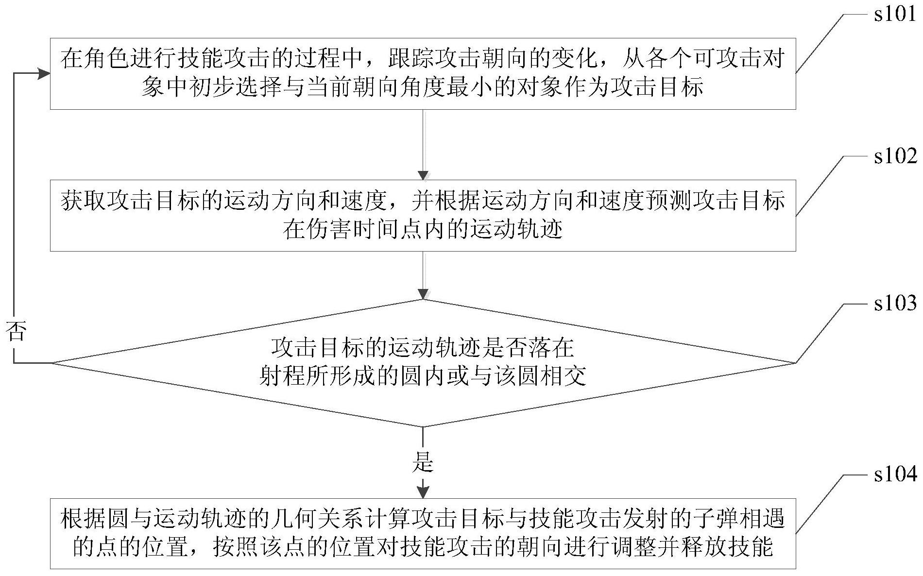 本发明公开了一种协助瞄准的方法与系统,先选择一个与当前朝向角度最小的对象作为攻击目标,再结合目标的运动规律预测目标的运动轨迹,计算运动轨迹与子弹碰撞的位置,按照该位置调整朝向并释放技能。相比手动确定攻击目标和攻击方向的传统方法,本发明在准确性、便利性和效率上具有明显的优势,大大提高了玩家的游戏体验。