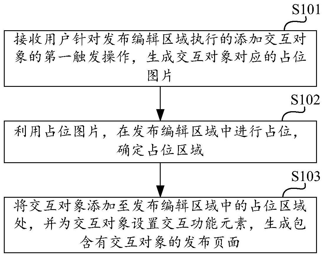 本发明公开了一种发布页面处理方法、计算设备及存储介质,其中,发布页面处理方法包括:接收用户针对发布编辑区域执行的添加交互对象的第一触发操作,生成交互对象对应的占位图片;利用占位图片,在发布编辑区域中进行占位,确定占位区域;将交互对象添加至发布编辑区域中的占位区域处,并为交互对象设置交互功能元素,生成包含有交互对象的发布页面。根据本发明提供的技术方案,通过占位图片在发布编辑区域中为所要添加的交互对象进行占位,将交互对象添加至发布编辑区域中的占位区域处,能够便捷地实现对交互对象的精准布局,能够通过发布页面发布交互对象,丰富了发布页面的处理效果,很好地满足了用户个性化交互需求。