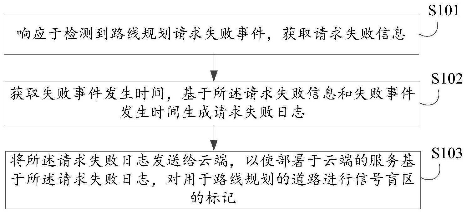 本公开实施例公开了一种路线规划方法、装置、导航方法及计算机可读存储介质,所述方法包括:响应于检测到路线规划请求失败事件,获取请求失败信息;获取失败事件发生时间,基于所述请求失败信息和失败事件发生时间生成请求失败日志;将所述请求失败日志发送给云端,以使部署于云端的服务基于所述请求失败日志,对用于路线规划的道路进行信号盲区的标记。该技术方案能够对于处于信号盲区的道路进行识别,提供覆盖通信和定位网络状态更为稳定的规划路线,满足了某些场景要求终端设备在出行过程中需要始终与网络保持连接的需求。