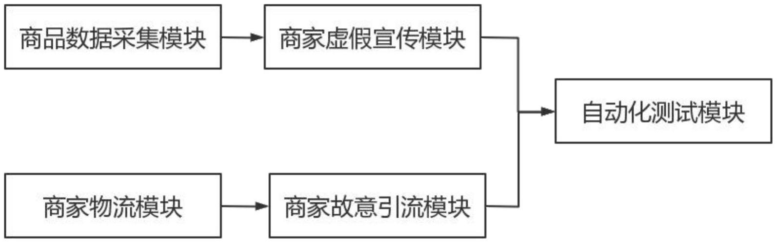 本发明公开了一种基于人工智能的软件自动化测试管理系统及方法,属于人工智能技术领域。本发明设置虚假宣传模块基于深度学习算法识别商家实际销售的商品,计算商家实际销售的商品与商家宣传的商品的差别,判断商家是否虚假宣传;设置商家故意引流模块构建商家故意引流评估模型,判断商家是否故意引流;设置自动化测试模块通过系统的参数化机制以及封装的多样化组件来实现一个脚本适配多套环境场景;通过设置商家虚假宣传模块和商家故意引流模型评估,监控商家行为,维护平台的信誉,通过设置自动化测试模块,模块化管理测试场景,根据具体的测试需求来组合场景自动化输出测试报告,保障系统在多次数据调试后的正常运行。