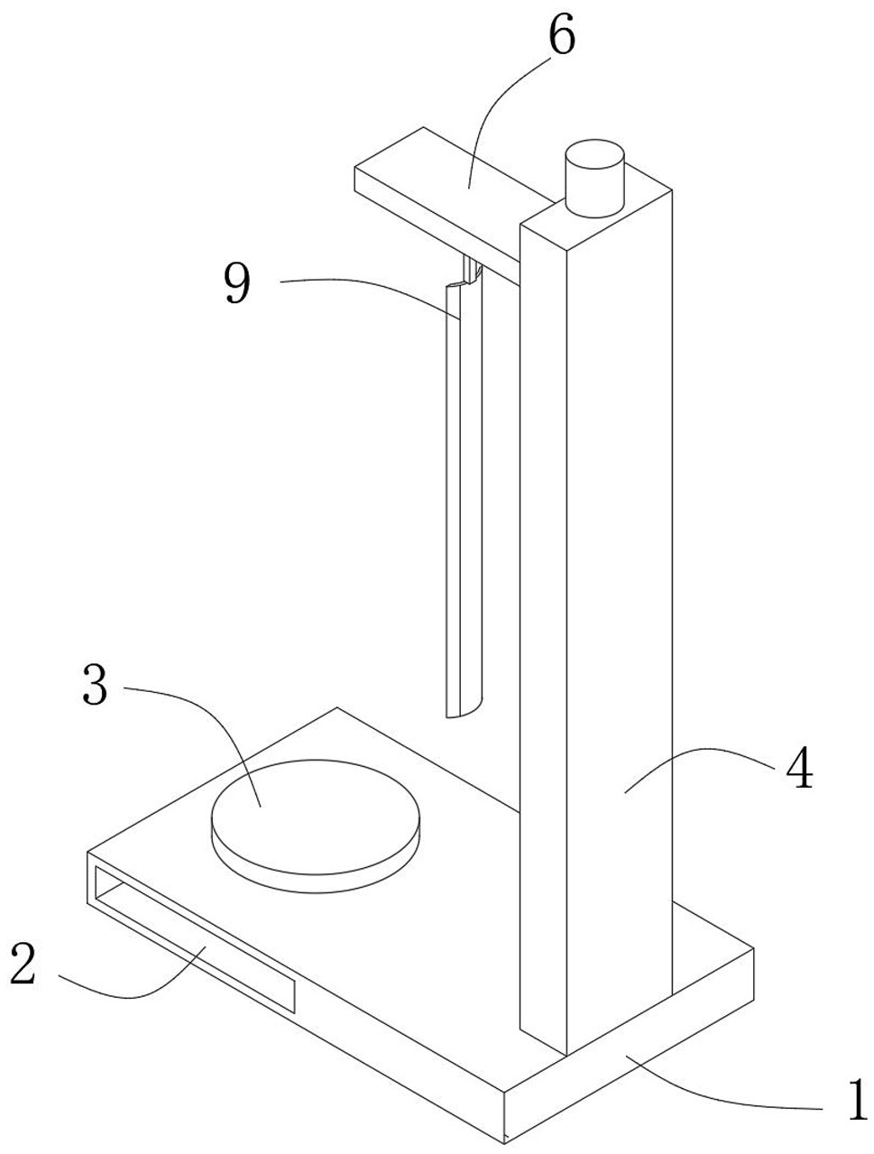 本实用新型公开了一种钢筒混凝土管加工用表面抹灰装置,涉及钢筒混凝土管加工技术领域。本实用新型包括底座,底座的内部开设有通槽,通槽内底面转动连接有转柱,转柱贯穿底座上端与其转动连接,底座的上端固定连接有支撑板,支撑板的一侧开设有第一滑槽,第一滑槽内滑动连接有升降板。本实用新型通过将表面需要抹灰的混凝土圆管竖直的放置在转柱上,通过启动第一伺服电机可以利用第一螺纹杆带动升降板移动,以此可以方便对高度较高的圆管进行操作,通过拧动第二螺纹杆可以带动滑块和弧形板移动,使得弧形板能与混凝土圆管表面贴合,随后使用喷涂机器对混凝土圆管表面喷涂细致的水泥砂浆。