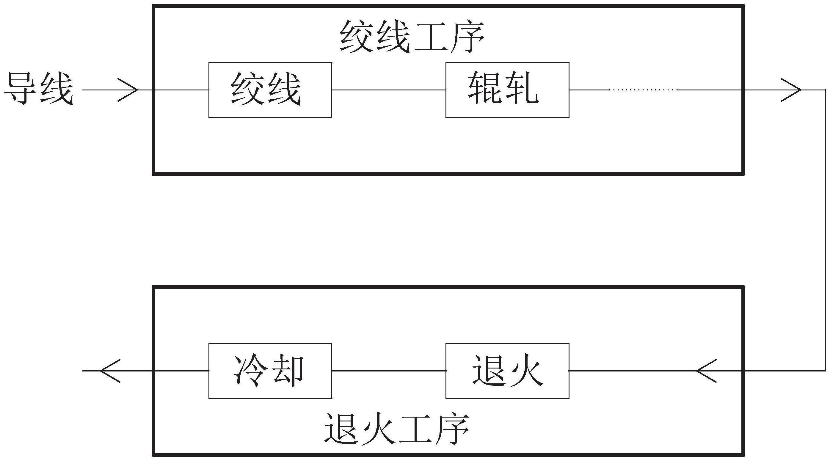 本发明公开绞后连续退火式铜导体退火工艺,将拉丝工序生产的铜单线,经绞线工序绞制成所需截面的绞合导体;将绞合导体转到退火工序,在充满保护介质的退火装置中进行连续退火处理,使导体电阻符合国家标准要求,然后经冷却处理,收线完成整个工序操作;保护介质的压力值保持在0.35MPa~0.45MPa,通过适当控制退火装置上的电压和电流,将绞合导体升温至铜材退火温度450℃±50℃,导体牵引线速度控制在10.5~100m/min。本发明可以降低绞后导体的电阻值,所需消耗的铜材可减少1.8~3.2%,节约资源,提高效益。
