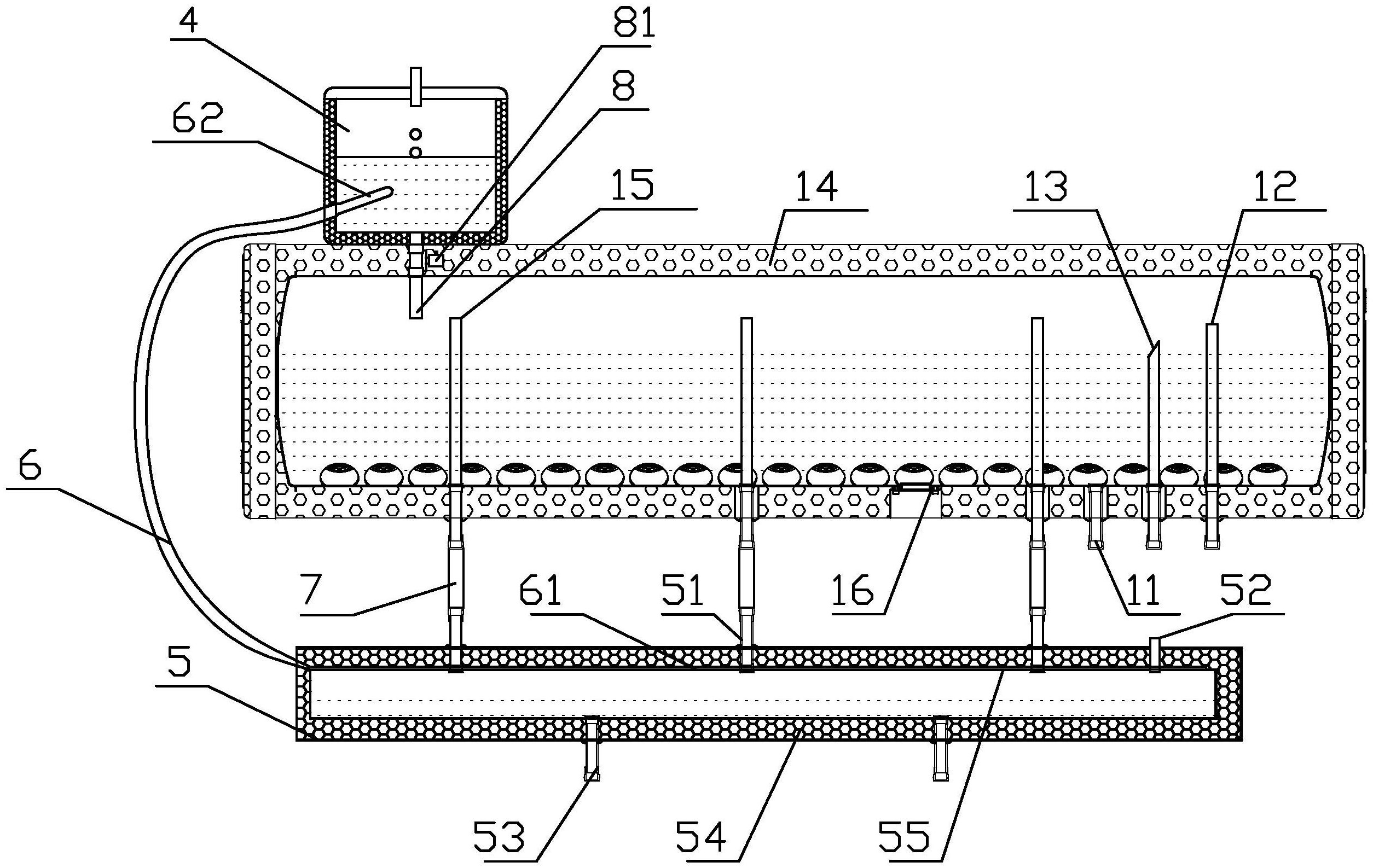 本实用新型提供一种热管潜热回收式太阳能海水淡化蒸馏器,包括容纳有海水的海水储水箱以及为所述海水储水箱提供热量的太阳能集热器;还包括:淡水收集箱,通过数个蒸汽连通管与所述海水储水箱的液面上方的空间相连通,所述淡水收集箱具有金属内胆;副水箱,所述副水箱通过能够控制启闭的排水管与所述海水储水箱相连通;柔性金属热管,其蒸发段与所述淡水收集箱的金属内胆紧密贴合,而冷凝段浸入所述副水箱的液面以下。本实用新型通过使用柔性金属热管收集蒸汽冷凝潜热,潜热热量收集快,极大提高系统效率。