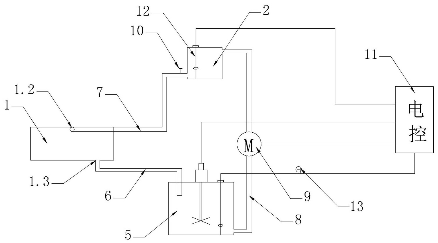 本实用新型涉及一种钢丝绳自动加液循环涂胶装置,其特征在于它包括涂胶箱、加液箱、导流胶槽、钢丝模套、搅拌器、回流管、加液管、导流管、加液泵、流量调节阀和控制器;涂胶箱底部的回流通孔通过回流管与搅拌器连通,搅拌器设置在涂胶箱下方;搅拌器通过导流管与加液箱连通,加液泵设置在导流管上;加液箱设置在涂胶箱上方,加液箱通过加液管与涂胶箱的进胶通孔连通,流量调节阀设置在加液管上;加液泵和搅拌器分别与控制器连接。本实用新型具有操作简单、能自动加液和能降低劳动强度的优点。
