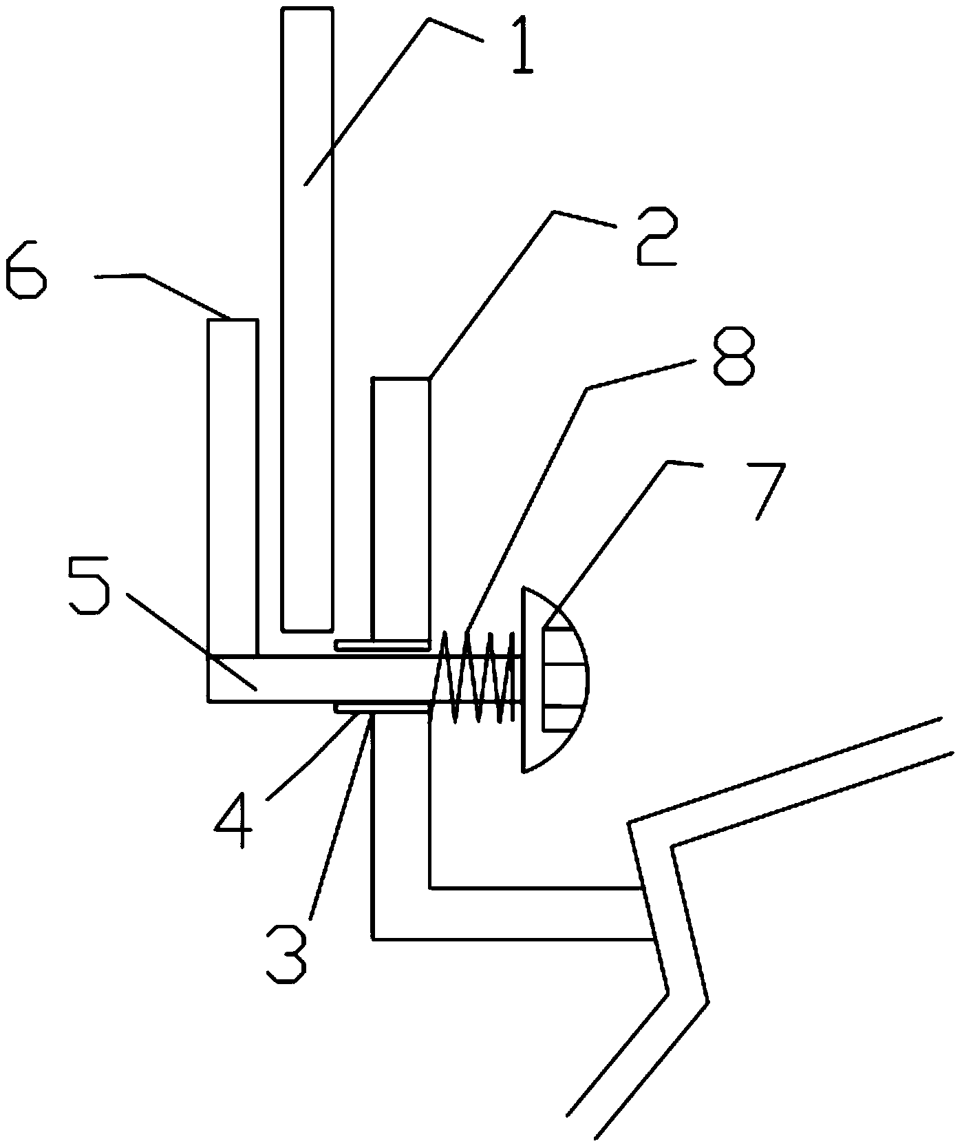 本实用新型涉及热泵技术领域,具体涉及一种易拆装式弹簧自锁紧固装置,包括包括平行设置的第一固定板和第二固定板,第二固定板上设有通孔,通孔上安装有限位圆筒,还包括连杆,连杆插入到限位圆筒内,且连杆的一端连接有垂直向上延伸的连接锁片,第一固定板位于连接锁片的后侧且能够限制连接锁片向前的移动。