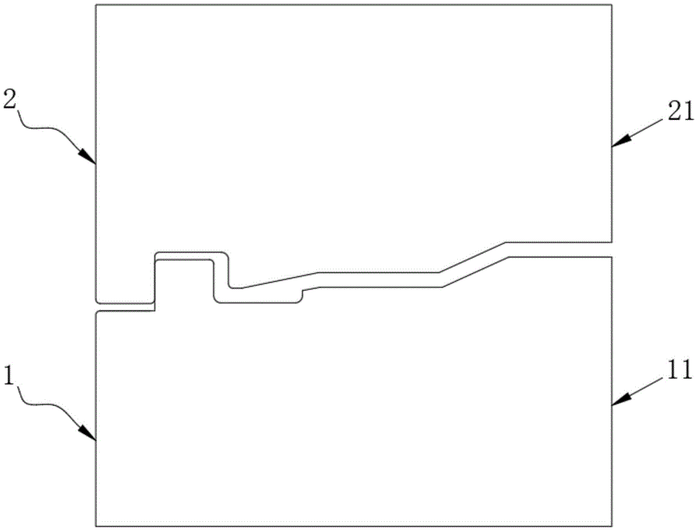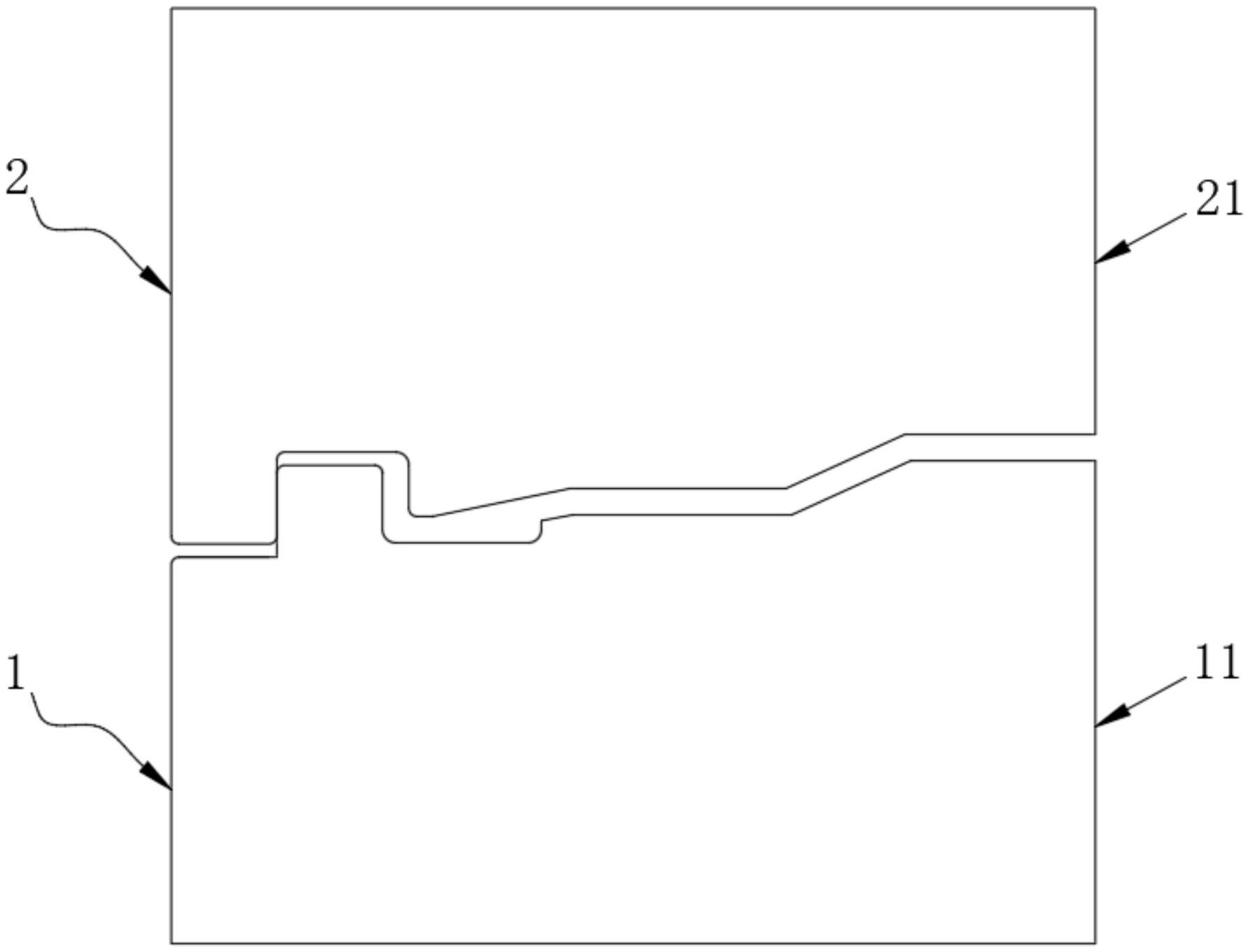 本实用新型属于钢管加工设备技术领域,尤其为承插口螺旋钢管用下治具成型机构,包括下模和上模,所述下模和所述上模均为回转体,所述下模包括模芯和一体成型在其外壁的成型凸缘,所述模芯上由左至右依次开设有下模限位部、下模第一型面、下模第二型面、下模第三型面、下模第四型面和下模第五型面;液压成型设备控制下模和上模,并对钢管进行压接成型,采用冷模承口一次成型时,利用强大压强将单独的密封卡位结构体冷压冷焊到承口上,形成密封卡口结构,即解决了密封的固定,又使密封的使用性能达标,加大了密封在承压时,同时保持了静态密封的能力,原为小角度铸造面,现改为45度冷压成型面,便于成型控制。