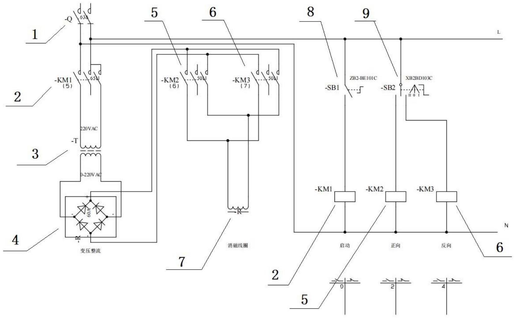 难于本实用新型公开了一种直缝钢管剩磁600高斯以上的超强剩磁消除设备,该设备包括启动接触器KM1、调压器T、整流桥‑R、负极性接触器KM2、正极性接触器KM3及消磁线圈R,消磁线圈内径比钢管外径大30mm~80mm,220V交流电源经启动接触器KM1接入调压器T初级,调压器T次级与整流桥‑R的交流电输入端相连,整流桥‑R的输出直流电压端通过负极性接触器KM2、正极性接触器KM3与消磁线圈R连接,消磁线圈R套在钢管外壁上。本实用新型所述钢管超强剩磁消除设备根据钢管剩磁的极性及大小,按照消磁磁场强度是1.3~1.6倍剩磁磁场强度和反极性的原理,调节调压器电压大小和改变整流模块的输出极性,在一分钟之内平滑的降低电压直到零值,然后切断电源,故障率低,操作灵活。