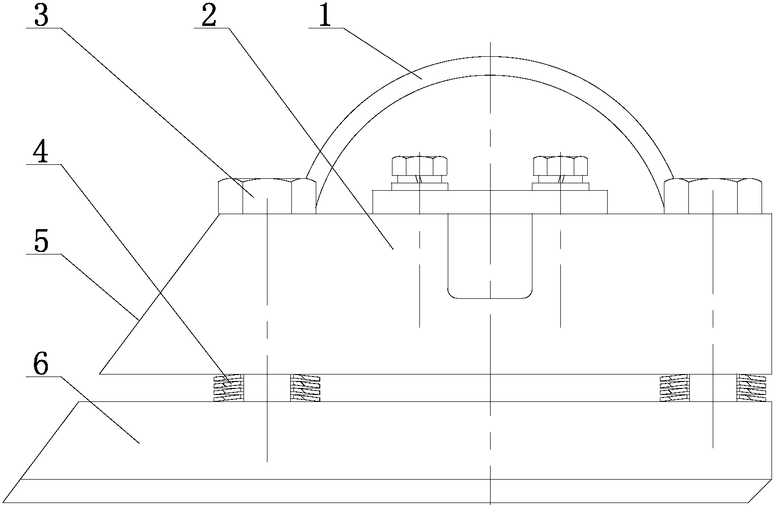 本实用新型主要用于引导带钢进入剪板机,涉及一种螺旋焊管生产线剪板机带钢导向装置,其包括支座和托辊,支座的前部具有斜向上的导向斜面,支座顶端安装托辊轴,托辊通过轴承安装在托辊轴上。本实用新型在传统导向装置中增设了自由转动的托辊,使带钢与导向装置之间的摩擦由滑动摩擦变为滚动摩擦,有效的避免了带钢划伤问题,提高产品质量;增设托辊高度自调节机构,通过调节弹簧和导向螺栓实现了上部活动座及托辊高度的自由调节,从而能够有效的适应带钢的上下浮动,最终有效减少带钢对托辊的冲击,降低故障率。
