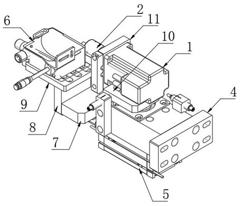 本实用新型公开了一种将零件旋转到任意指定角度的机构,具体涉及龙头阀芯自动化组装技术领域,包括伺服电机,所述伺服电机输出端设置有零件固定底座,所述零件固定底座顶部设置有零件本体,所述伺服电机一侧设置有底座固定块,所述底座固定块一侧设置有旋转气缸,所述底座固定块顶部设置有传感器。本实用新型通过设置自动化运作的方式,实现找到零件固定起始位置,并旋转到任意指定角度位置,现有技术通过人工进行大概角度范围判断的方式相比较,本设备在使用时整个过程标准化、精确度高、稳定可控,从而使得本设备的实用性得到了明显的提升。