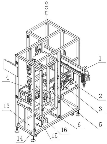 本实用新型公开了单把手陶瓷芯轴自动试气设备,涉及到生活卫生用品领域,包括机架,所述机架内部上方的前侧固定连接有上料模组,所述机架内部中部的左右两侧均固定连接有同步带,两个所述同步带的上表面均固定连接有压板,右侧所述压板的上表面固定连接有夹具,所述夹具的前侧表面固定连接有来料不良品通道,左侧所述压板的上表面固定连接有并行等待位,所述机架内部的上侧固定连接有高精度测漏仪。本实用新型在试气等待位,卸料位增加物料缓存,消除等待时间,试气双工位并行,提高效率,供气系统采用旁充和系统结合,缩短供气时间,在原来设备的基础上增加自动伺服移载和卸料机构,方便多工位、单工位调整和替代人工操作。