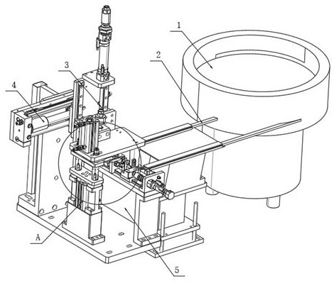 本实用新型公开了双把手龙头阀芯自动装配设备,涉及到双把手龙头阀芯自动装配设备领域,包括第一震盘、两个第二震盘、第三震盘,所述第一震盘左侧表面固定连接有第一直震,所述第一直震的左侧表面固定连接有第一支撑架,所述第一支撑架的后侧表面固定连接有第一横移气缸,所述第一横移气缸的前侧表面固定连接有第一上下气缸。本实用新型本设备提供一种自动组装阀芯和检测阀芯密封两大功能的设备,通过拆分工序,将逐个工序利用标准执行元件和非标零件的组合实现自动装配,期间结合适当位置,形成光学检测传感器及视觉系统,规避和提升组装过程的高品质和高效率,最终通过一出六的自动高压气密测试设备检测阀芯的密封性能,是设备达到自动高效,高品质的目的。