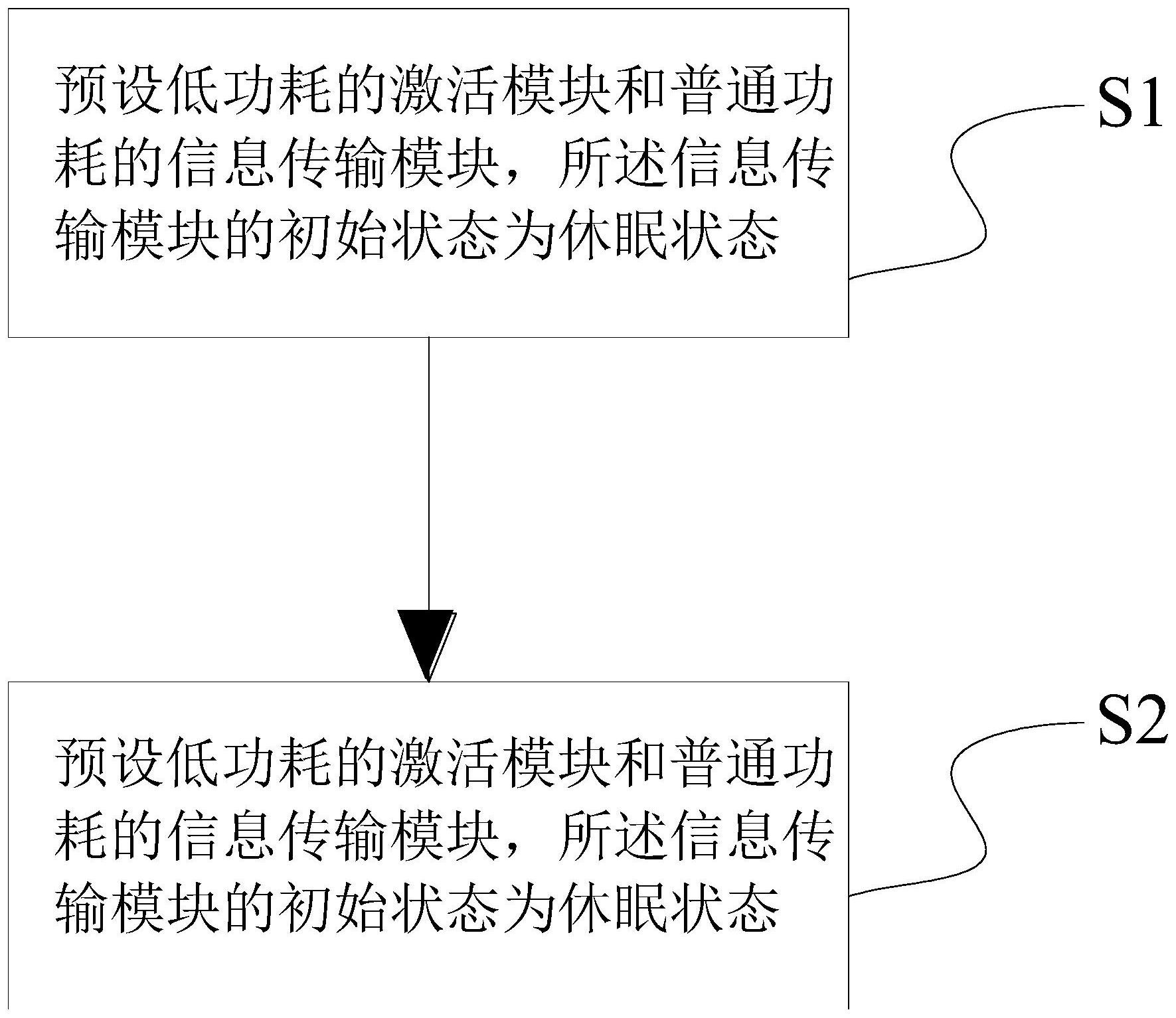 本发明公开了一种水表近场唤醒方法,包括以下步骤:预设低功耗的激活模块和普通功耗的信息传输模块,所述信息传输模块的初始状态为休眠状态;当所述激活模块接收到指定频率的激活指令时,向所述信息传输模块发送唤醒指令。根据本发明提出的水表近场唤醒方法,通过设置低功耗的激活模块,辅助信息传输模块,使信息传输模块在绝大部分时间内会出于休眠状态,大大降低了水表的功耗,即使不接外部电源也能维持较长时间。本发明还公开了一种采用上述方法的系统、可读存储介质。