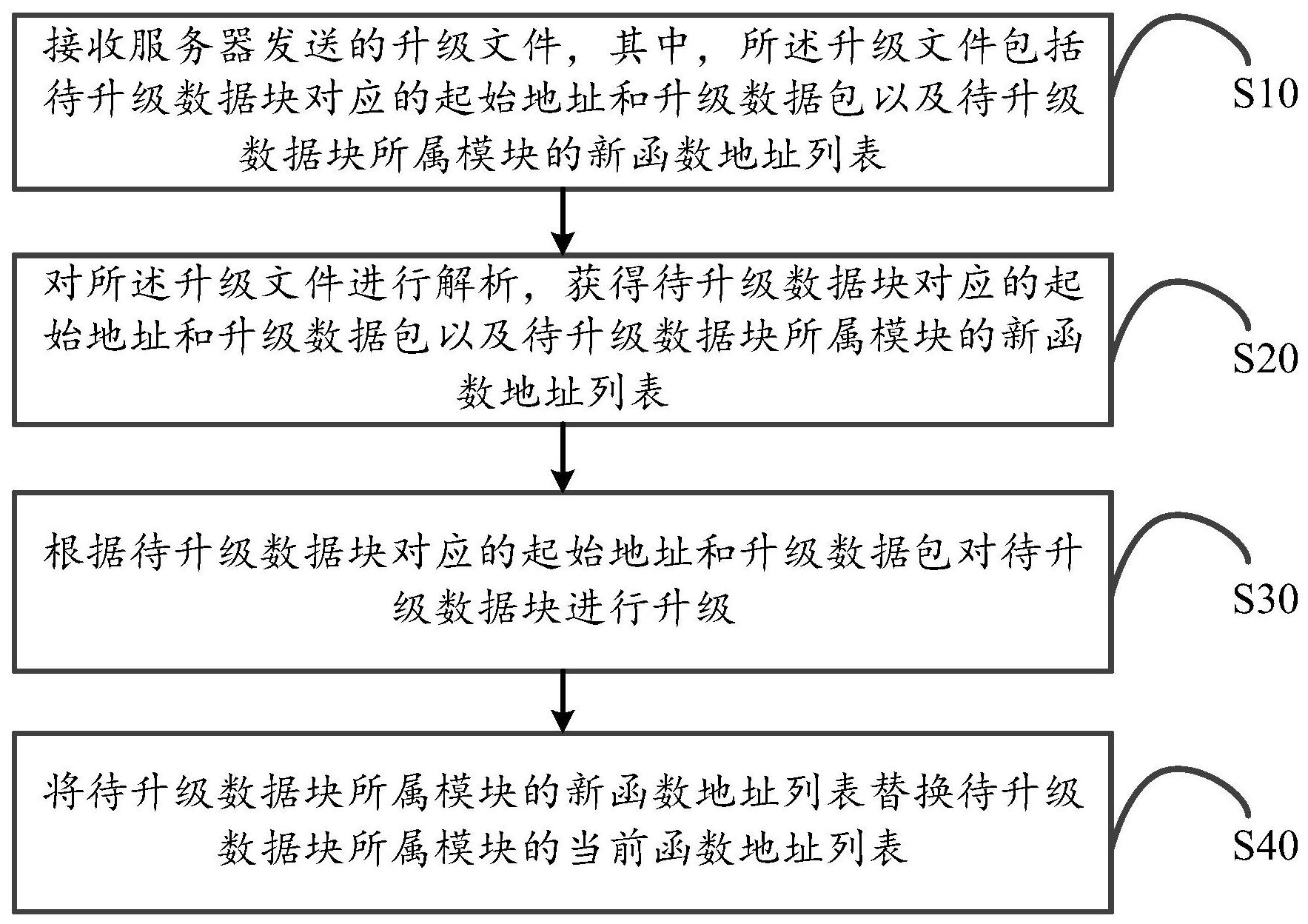本发明公开了一种电表升级方法、系统、智能电表及存储介质,所述方法包括:接收服务器发送的升级文件,其中,所述升级文件包括待升级数据块对应的起始地址和升级数据包以及待升级数据块所属模块的新函数地址列表;对所述升级文件进行解析,获得待升级数据块对应的起始地址和升级数据包以及待升级数据块所属模块的新函数地址列表;根据待升级数据块对应的起始地址和升级数据包对待升级数据块进行升级;将待升级数据块所属模块的新函数地址列表替换待升级数据块所属模块的当前函数地址列表。本发明解决了现有智能电表升级效率低的问题。
