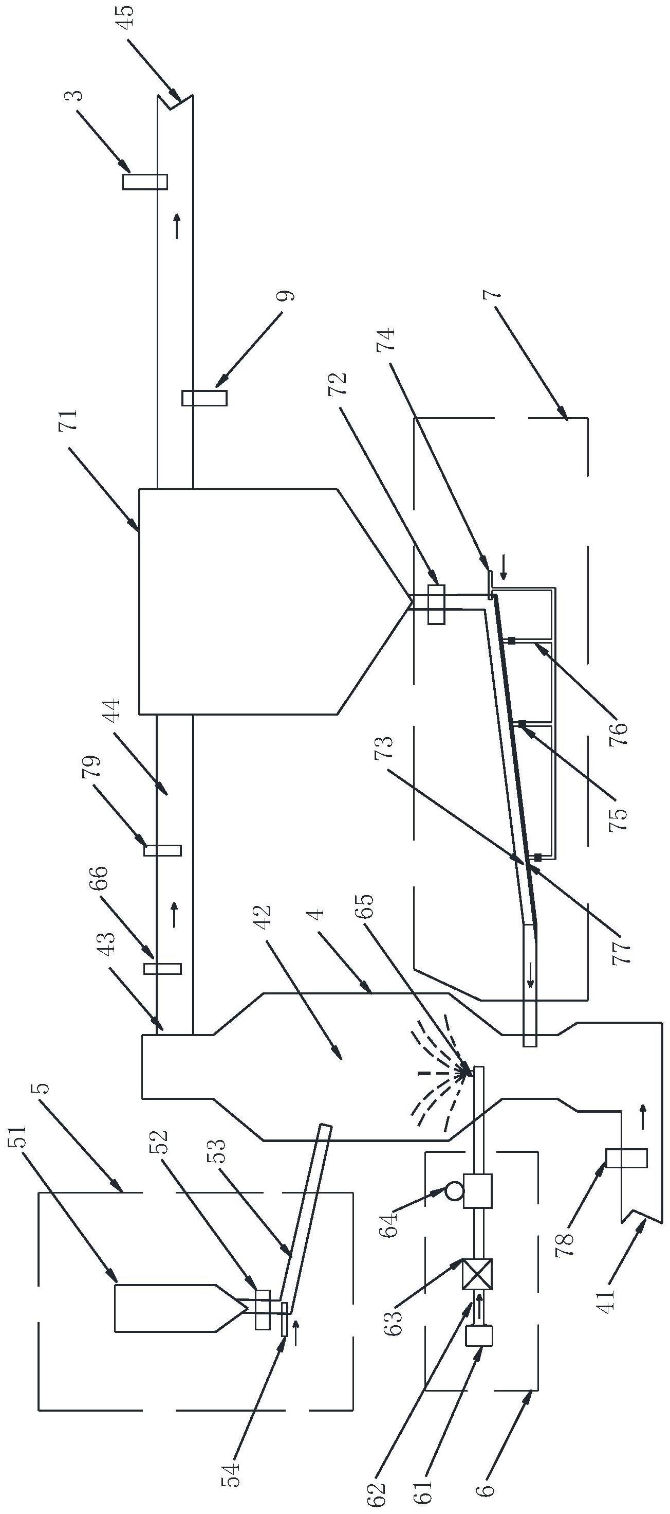 本发明涉及半干法脱硫系统及其控制方法。半干法脱硫系统反应塔底设有烟气入口,反应塔顶设有烟气出口,烟气出口经烟气管道连通返灰子系统的布袋除尘器,位于反应塔的上部通过径向贯穿反应塔塔壁的石灰输送管连接加石灰子系统,加石灰子系统设置在反应塔的循环流化床中,位于反应塔中部通过径向贯穿反应塔塔壁的喷水管伸入反应塔腔体内的喷水喷头,位于反应塔下部通过径向贯穿反应塔塔壁的返灰斜槽连接返灰子系统,压力变送器分别安装在反应塔的烟气入口和烟气出口管道上,DCS与上位机之间采用总线数据交换,烟气检测仪与上位机采用总线进行通讯,数据通过上位机发送到DCS中,DCS控制相应的加石灰子系统、喷水子系统和返灰子系统。
