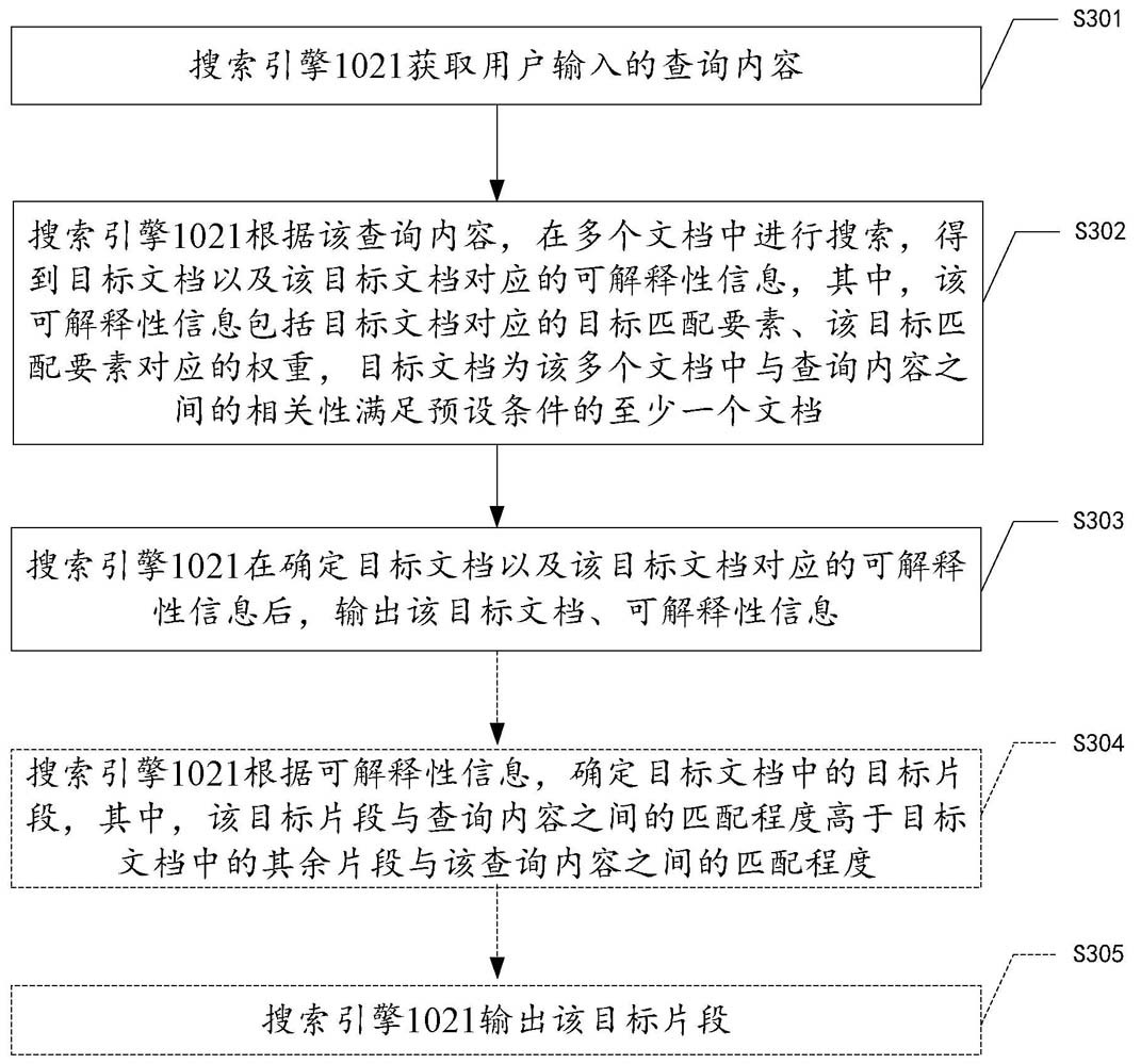 一种文档搜索方法,包括:搜索引擎获取用户输入的查询内容;根据所述查询内容,在多个文档中进行搜索,得到目标文档以及所述目标文档对应的可解释性信息,所述可解释性信息包括所述目标文档对应的目标匹配要素、所述目标匹配要素对应的权重,所述目标文档为所述多个文档中与所述查询内容之间的相关性满足预设条件的至少一个文档;输出所述目标文档、所述可解释性信息。如此,用户能够根据搜索引擎输出的可解释性信息确定搜索引擎反馈目标文档的依据,从而可以提高用户对于搜索引擎反馈目标文档的可信度,提高用户的搜索体验。此外,本申请还提供了相应的文档搜索装置及相关设备。