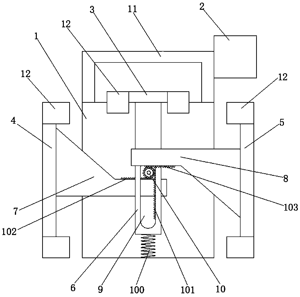 本实用新型公开了一种高效的瓷砖翻转装置,包括支撑底板和伺服电机,所述支撑底板的前侧设置有托架,左右两侧分别设置有左夹架和右夹架,托架上固定有第一滑动杆,且第一滑动杆上开设有滑槽,滑槽内齿连接有主齿轮,第一滑动杆的上方和下方分别有第二滑动杆和第三滑动杆,第二滑动杆和第三滑动杆均通过齿传动连接主齿轮,支撑底板的底部固定安装有支撑架,支撑架的前端一侧传动连接伺服电机,通过输送机构将瓷砖导入到支撑底板上,伺服电机将支撑底板翻转过程中,托架、左夹架和右夹架由于瓷砖的重力将其夹住,翻转过后托架失去压力后松开,把瓷砖通过翻面,从而实现对瓷砖进行机械化翻转,其翻转方便且工作效率高。