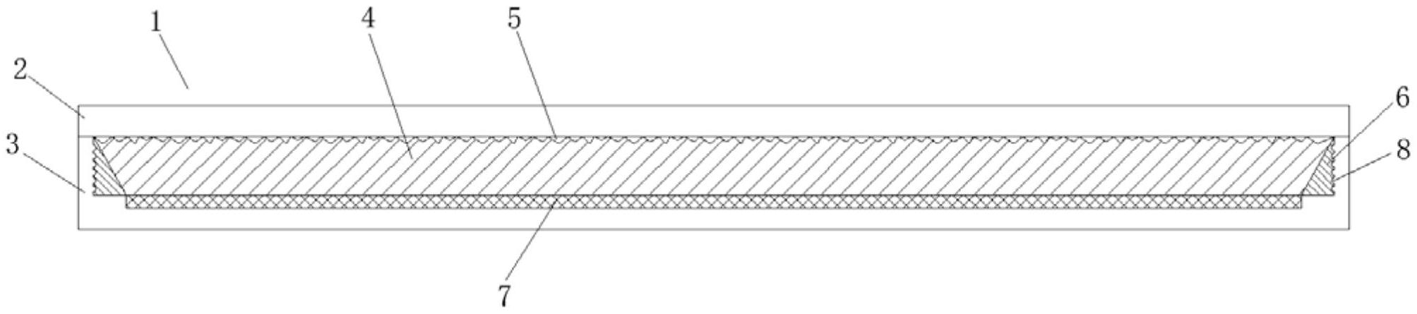 本实用新型公开了一种抗冲击的仿天然瓷砖,包括瓷砖本体,瓷砖本体包括釉面层和胚体层,所述胚体层的顶面开设有容纳槽,该容纳槽内设有装饰层,所述装饰层的顶面与胚体层的顶面呈同一平面,且装饰层的顶面设有仿天然雕刻纹理,所述釉面层通过填充在仿天然雕刻纹理上,所述装饰层的外侧面设置有缓冲部,所述装饰层的底部设置有抗裂纤维网,通过在带有仿天然雕刻纹理的装饰层上的外侧面设置有缓冲部,当瓷砖本体因不慎掉落至地面时,实现最大程度的对整体受压冲击力进行缓冲,通过在装饰层的底部设置有具有柔韧性的抗裂纤维网,通过其拉扯力进一步增加整体的强度,使得仿天然瓷砖的抗冲击能力更强,使用寿命较长。