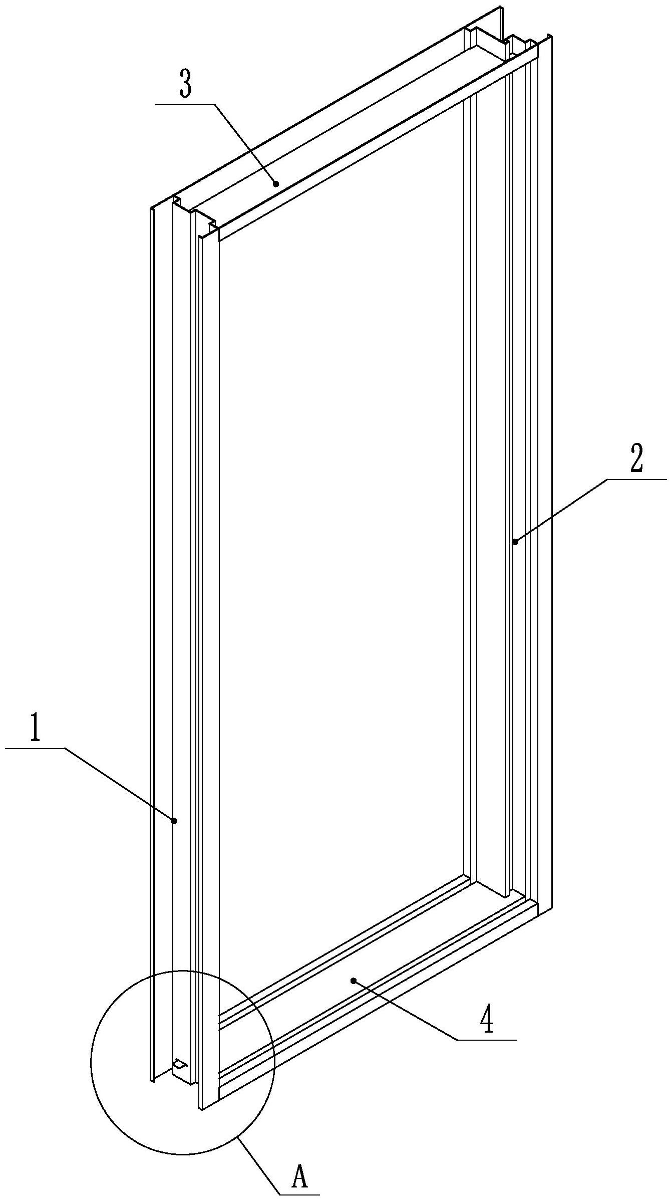 本实用新型公开了一种安全门门架的双下档结构,涉及安全门领域。安全门门架传统的做法是门架组合好以后把下档盖起来再做颜色,容易把颜色不小心弄到下档上去,而下档要去除颜色不但需要增加人力,而且去除也较困难。本实用新型的下档包括内档、外档和加强筋,在外档安装前,利用内档先实现门架两侧的门架锁档2和门架铰链档1的初步固定和颜色处理,最后外套外档并焊接固定。这样,处于外表的外档不会在门架颜色处理时沾上颜色,结构简单,操作方便,简化了双下档安装工艺,有效降低了人力成本。